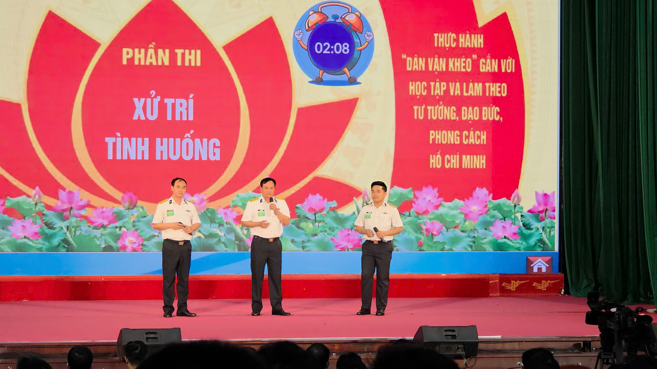 Đội thi của Quân chủng Hải quân trải qua các phần thi: viết chuyên đề tự chọn về công tác dân vận; thi kiến thức công tác dân vận bằng hình thức trắc nghiệm; giới thiệu về đơn vị, địa bàn đóng quân; xử trí tình huống công tác dân vận; giới thiệu mô hình tiêu biểu, cách làm hay, thiết thực, hiệu quả bằng hình thức sân khấu hóa.