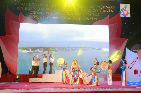 Quân chủng Hải quân tham gia Liên hoan 5 tiết mục với chủ đề “Khúc dân ca trên đảo” phản ánh đời sống tinh thần của phụ nữ Hải quân cũng như cán bộ, chiến sĩ đang công tác nơi đầu sóng, ngọn gió để bảo vệ vững chắc chủ quyền biển, đảo của Tổ quốc.