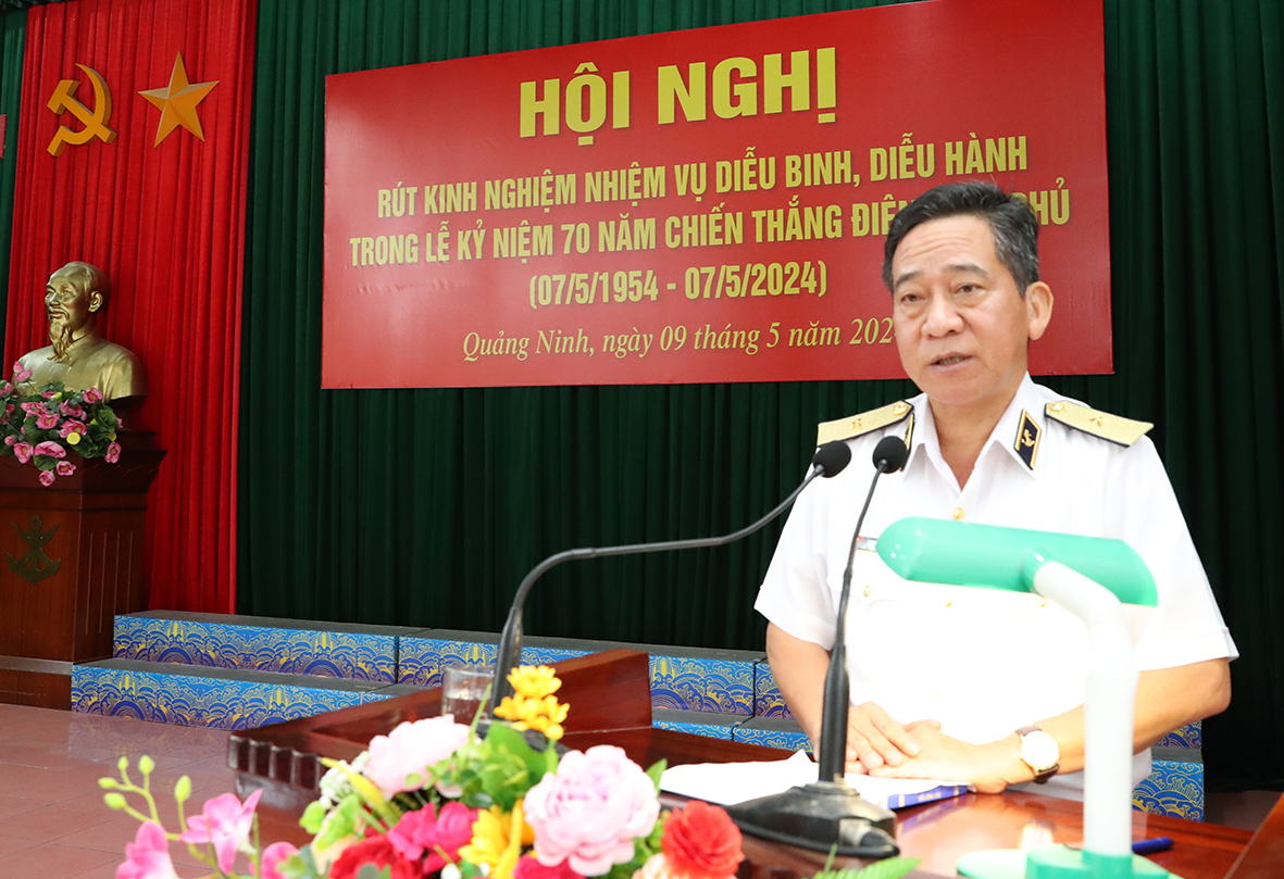 Chiều 9/5, tại Lữ đoàn 147, Vùng 1 (Quảng Ninh) Quân chủng Hải quân tổ chức rút kinh nghiệm thực hiện nhiệm vụ diễu binh, diễu hành trong Lễ kỷ niệm 70 năm Chiến thắng Điện Biên Phủ (7/5/1954 - 7/5/2024). Chuẩn Đô đốc Nguyễn Đình Hùng, Phó Tư lệnh Hải quân dự, chỉ đạo. Tham dự có thủ trưởng Bộ Tham mưu, Cục Chính trị, Cục Hậu cần, Cục Kỹ thuật và Bộ Tư lệnh Vùng 1.