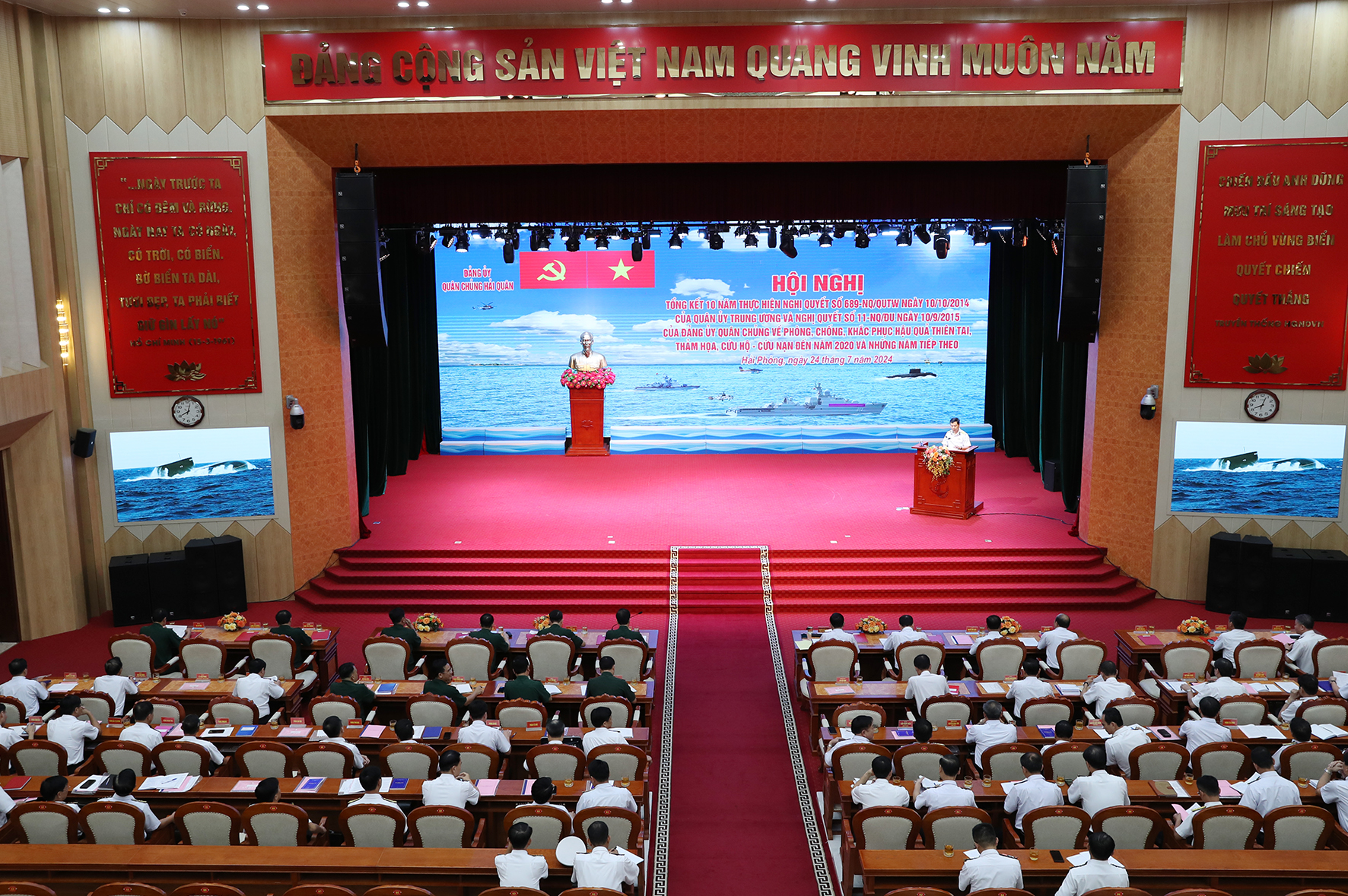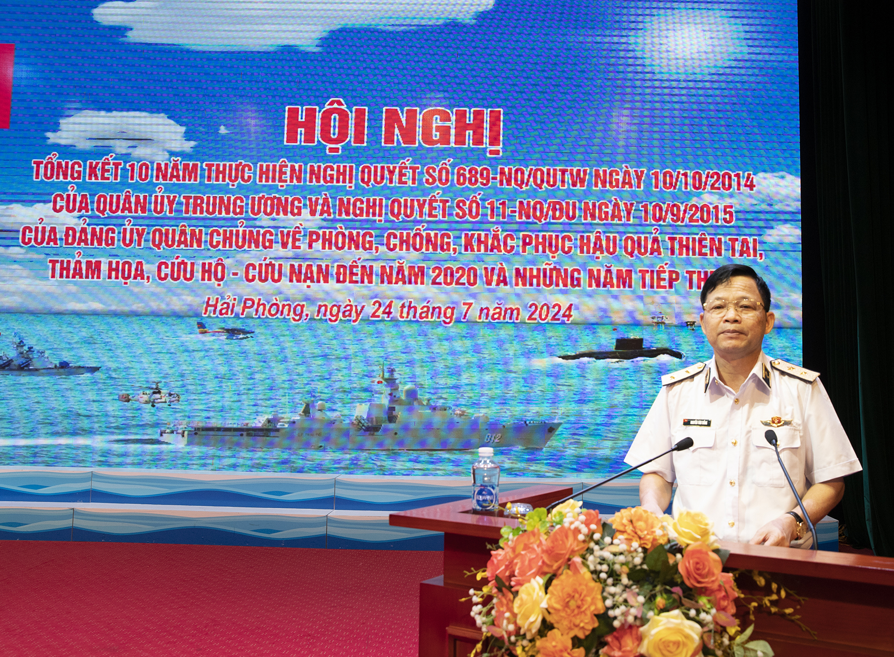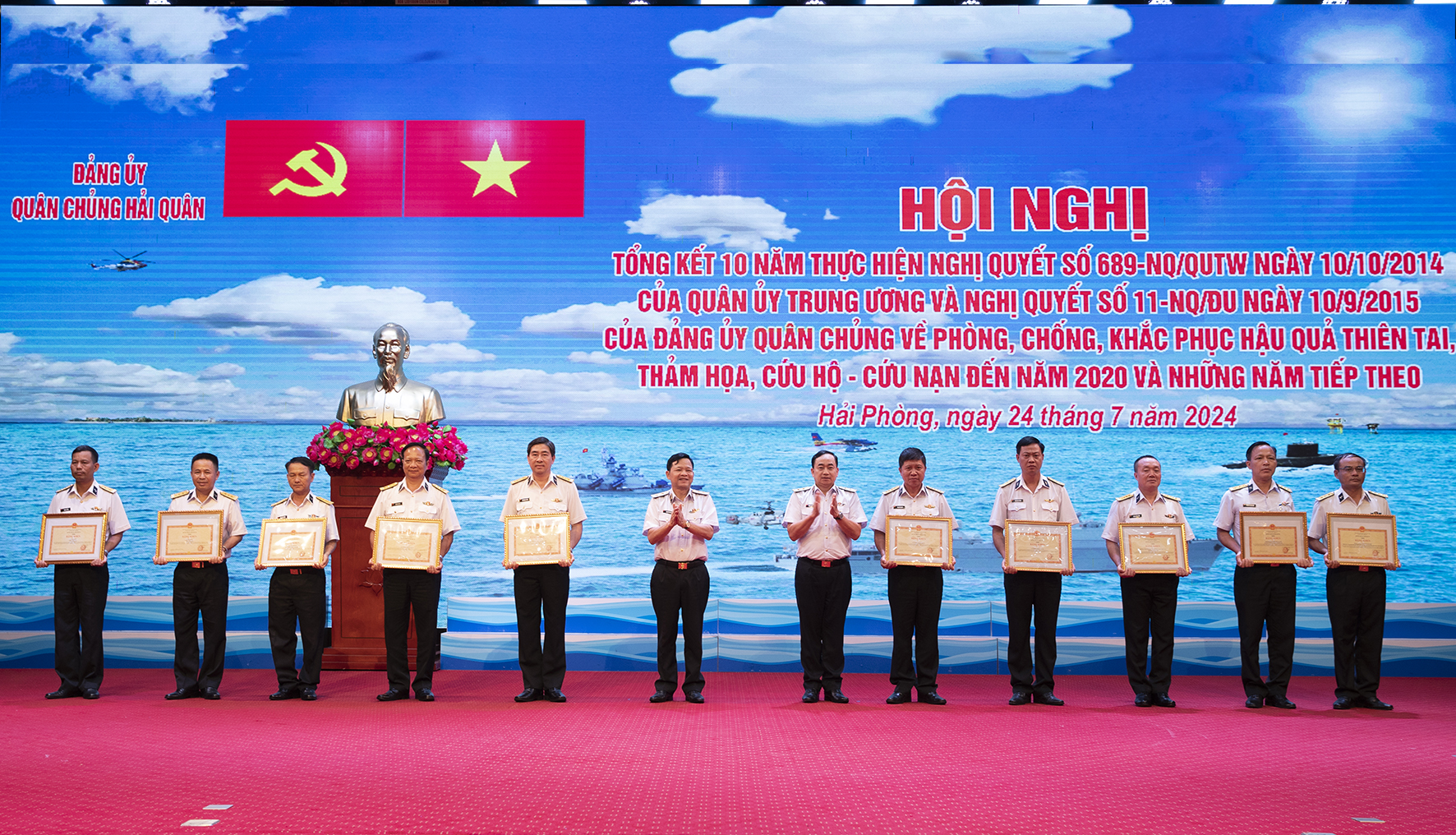 Sáng 24/7, tại TP. Hải Phòng, Đảng ủy Quân chủng Hải quân tổ chức Hội nghị tổng kết 10 năm thực hiện Nghị quyết số 689 của Quân ủy Trung ương và Nghị quyết số 11 của Đảng ủy Quân chủng về phòng, chống, khắc phục hậu quả thiên tai, thảm họa, cứu hộ - cứu nạn đến năm 2020 và những năm tiếp theo.