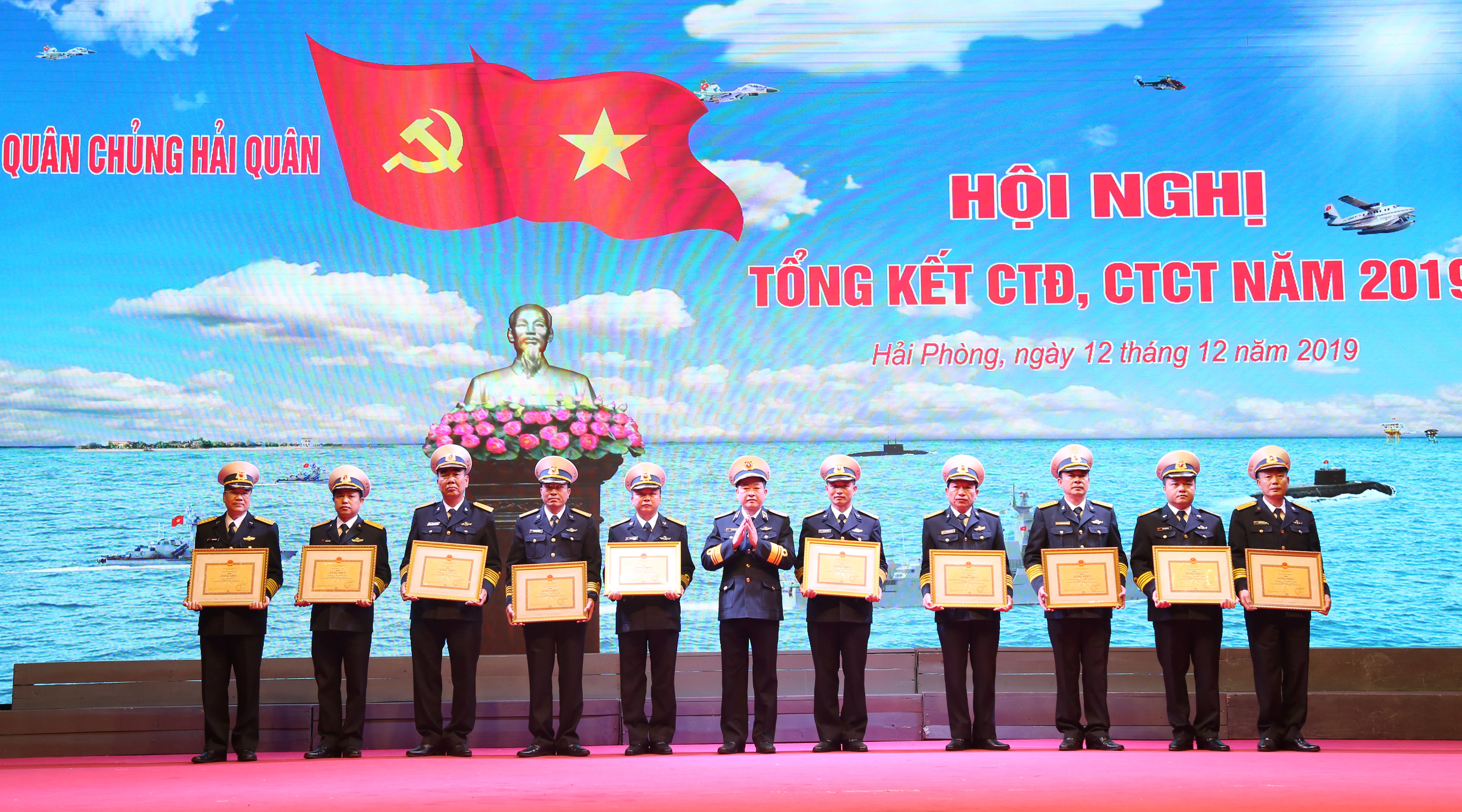 Tại hội nghị, Thường vụ Đảng ủy Quân chủng đã tặng Bằng khen cho 2 đảng bộ cấp trên trực tiếp cơ sở đạt tiêu chuẩn “Trong sạch vững mạnh tiêu biểu” năm 2019 và Giấy khen cho 3 đảng bộ cơ sở thuộc Đảng ủy Quân chủng đạt tiêu chuẩn “Trong sạch vững mạnh tiêu biểu” năm 2019. Bộ Tư lệnh Hải quân tặng Bằng khen cho 10 tập thể và 3 cá nhân có thành tích xuất sắc trong thực hiện phong trào thi đua “Dân vận khéo”, xây dựng “Đơn vị dân vận tốt” năm 2019.