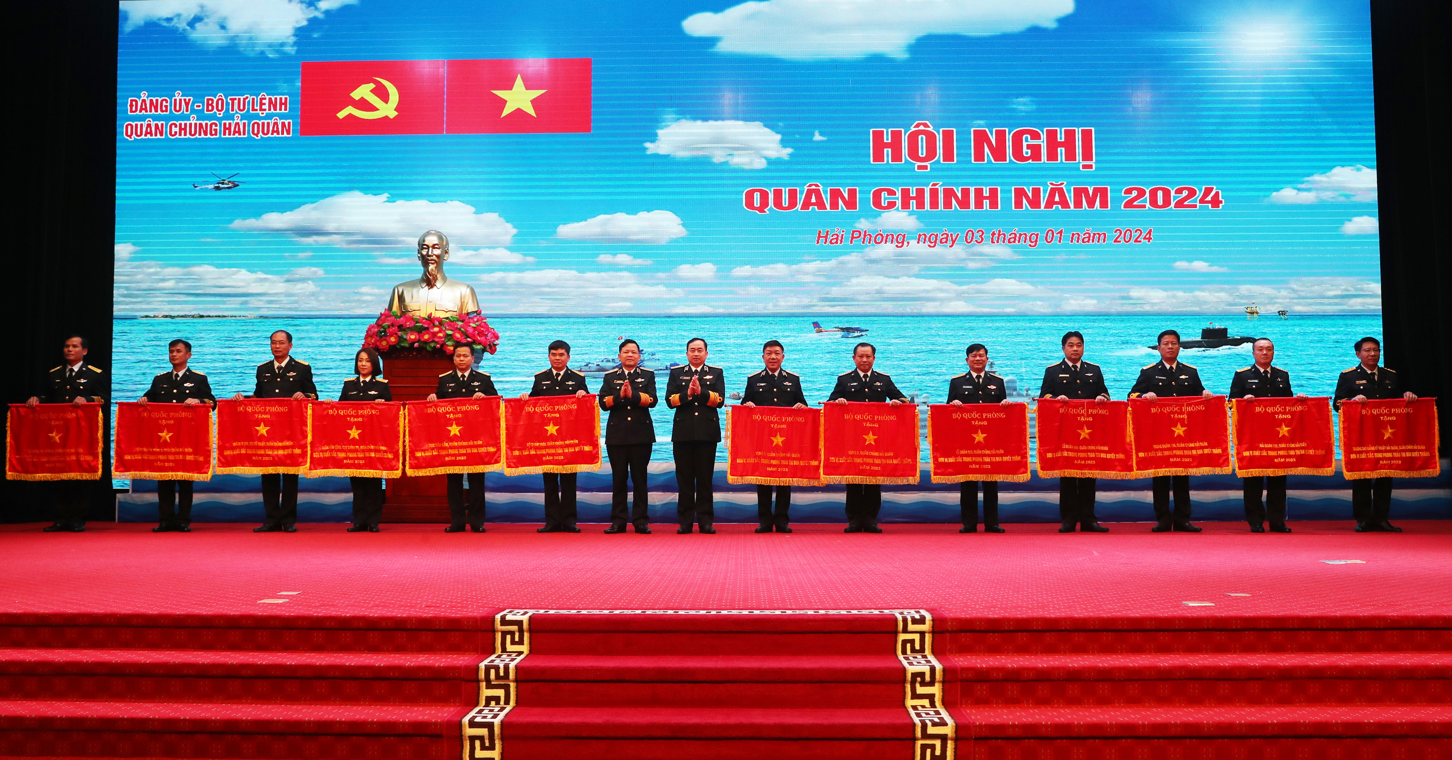 Thủ trưởng Bộ Tư lệnh Hải quân trao tặng các tập thể đạt thành tích xuất sắc năm 2023 Cờ thưởng thi đua của Bộ Quốc phòng
