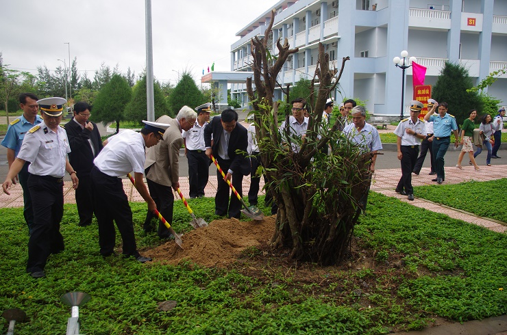 Chuẩn Đô đốc Nguyễn Trọng Bình và các đại biểu trồng cây tại Hải đoàn 128