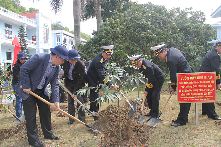 Chuẩn Đô đốc Đặng Minh Hải và gia đình Đại tướng Võ Nguyễn Giáp trồng cây tại Lữ đoàn 126