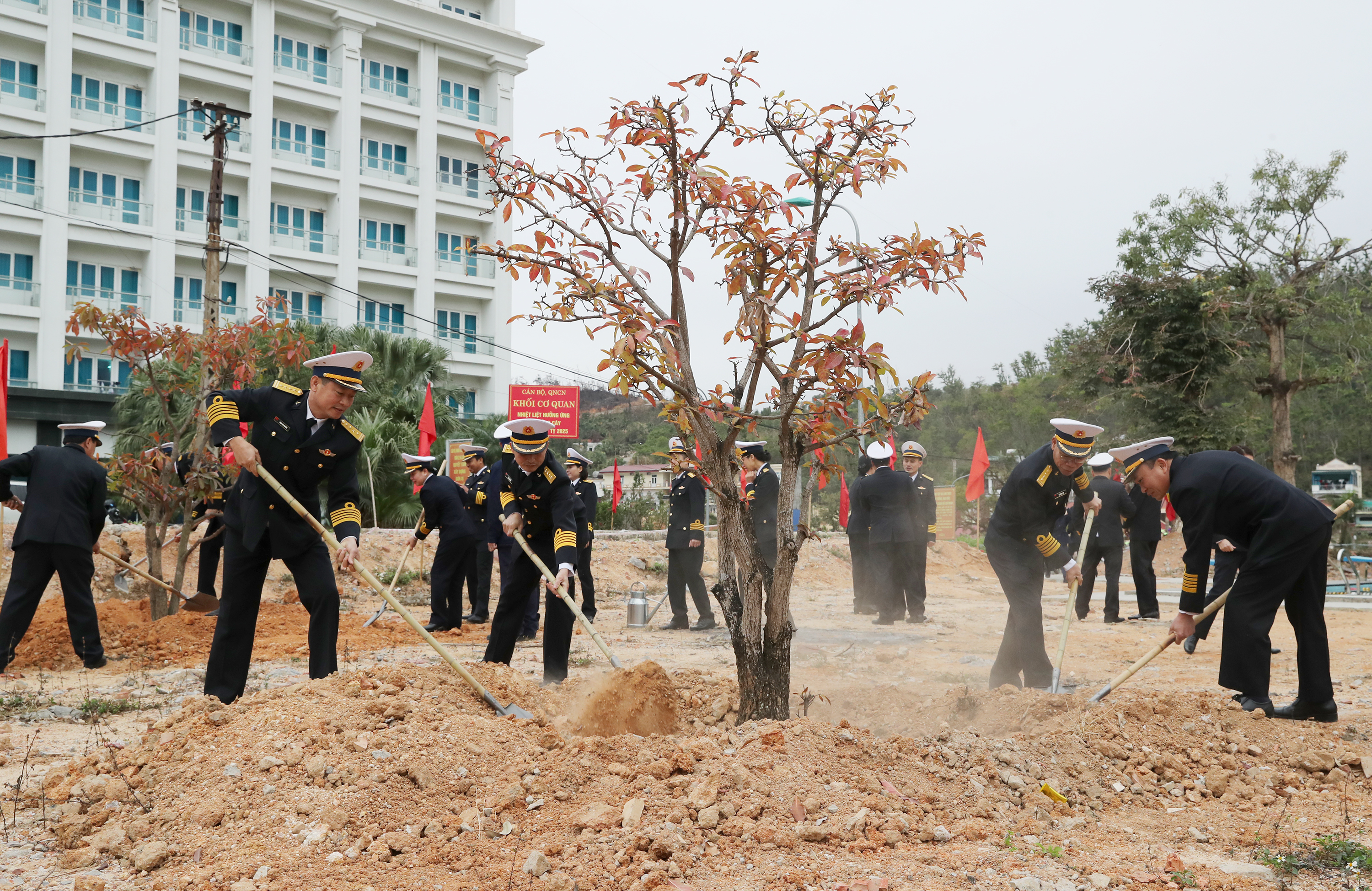 Chuẩn Đô đốc Đỗ Quốc Ân và các đại biểu trồng cây tại khuôn viên đơn vị