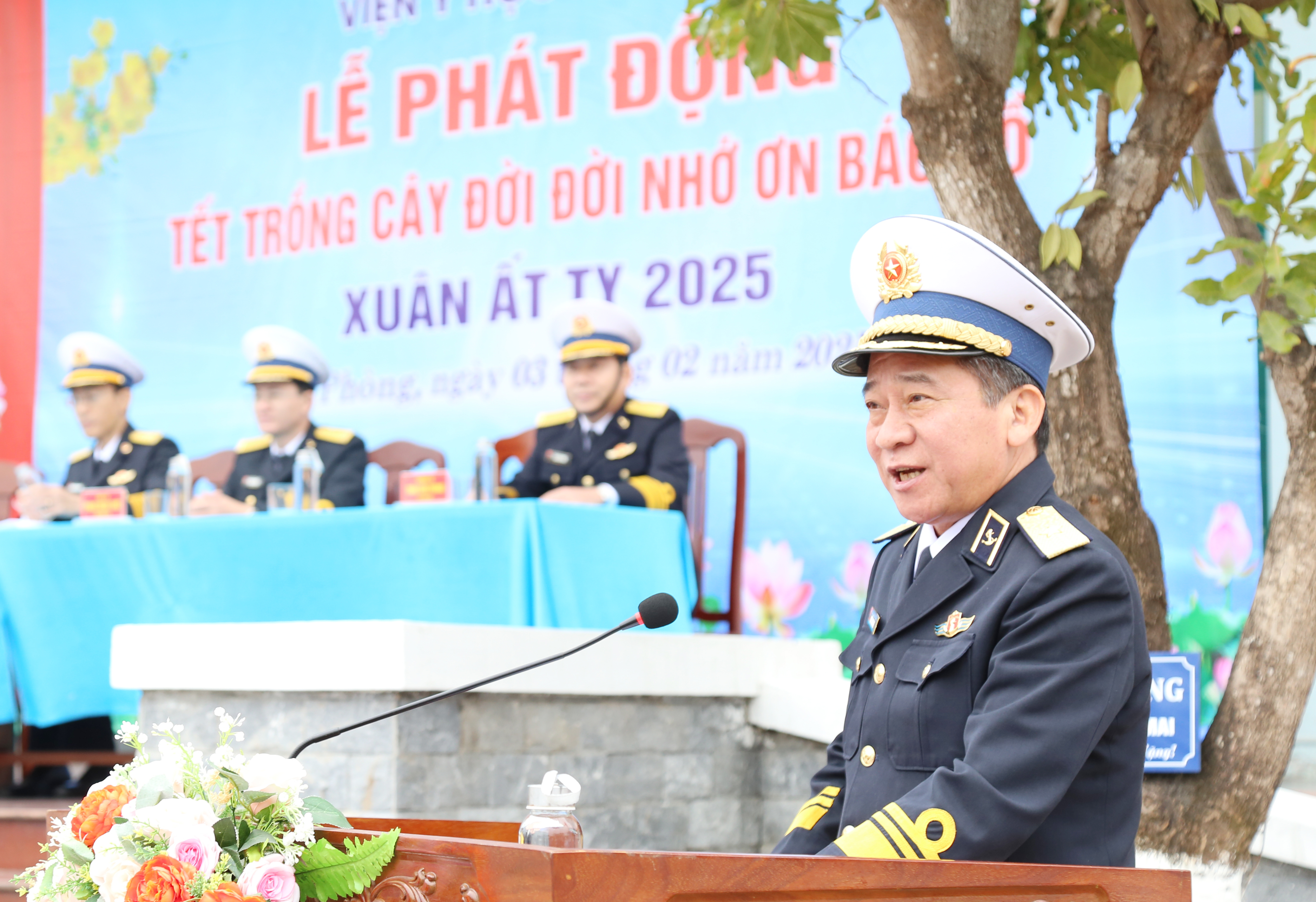 Phát biểu tại buổi Tết trồng cây, Chuẩn Đô đốc Nguyễn Đình Hùng khẳng định: Năm 2024, Viện Y học Hải quân có nhiều cố gắng trong quy hoạch khuôn viên, cảnh quan, môi trường doanh trại chính quy: trồng mới và chăm sóc nhiều cây ăn quả, cây cảnh, cây bóng mát, làm cho cơ ngơi đơn vị khang trang, xanh, sạch, đẹp…
