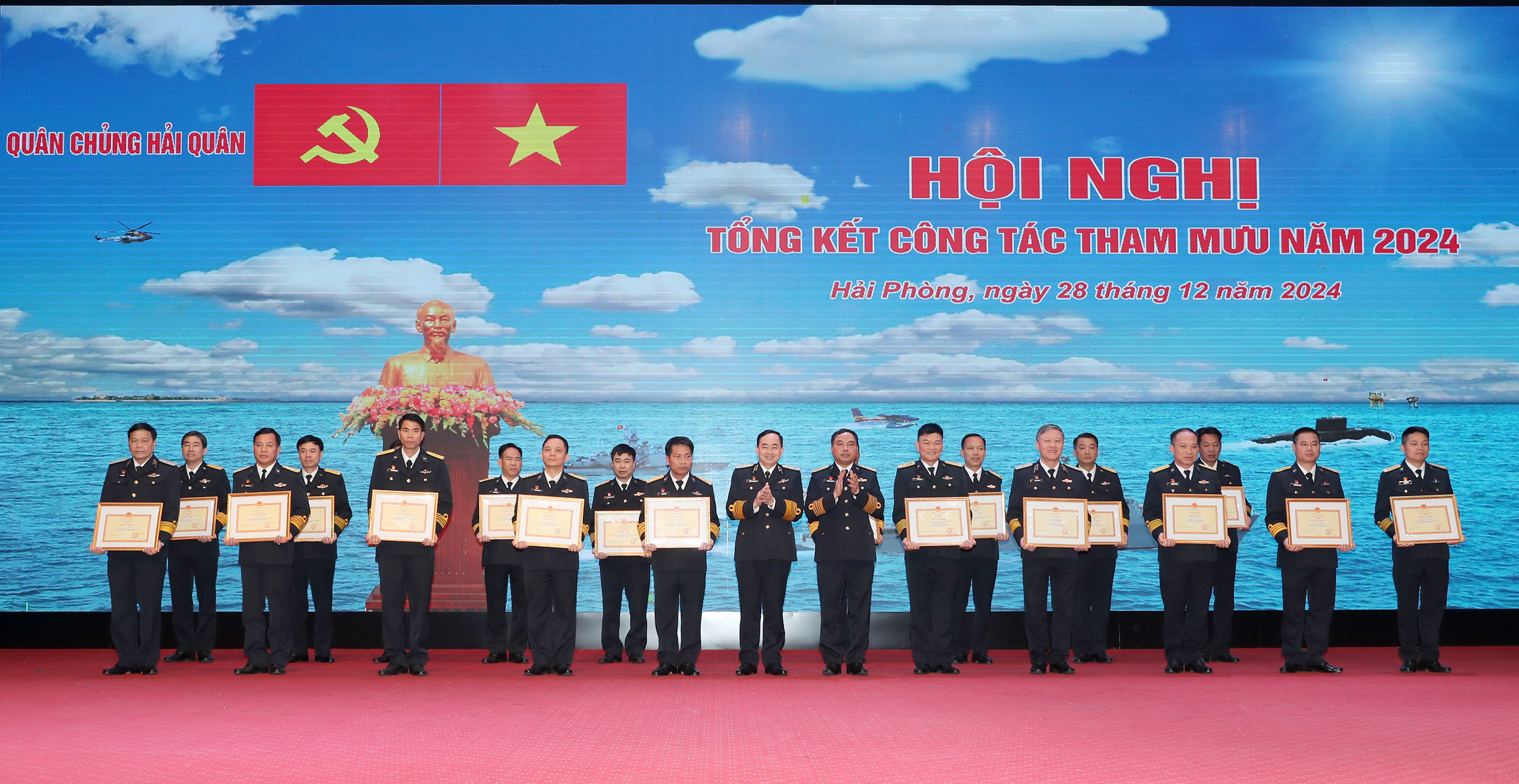 Hội nghị đã công bố quyết định của Tư lệnh Hải quân tặng Bằng khen “Đơn vị an toàn” cho 9 cơ quan, đơn vị; tặng Bằng khen, Giấy khen cho 10 tập thể có thành tích xuất sắc trong chỉ đạo, tổ chức và tham gia các hội thi, hội thao, hội diễn năm 2024; tặng danh hiệu “Đơn vị huấn luyện giỏi” cho 37 tập thể; tặng danh hiệu “Đơn vị huấn luyện thể lực và hoạt động thể thao giỏi” cho 25 tập thể.