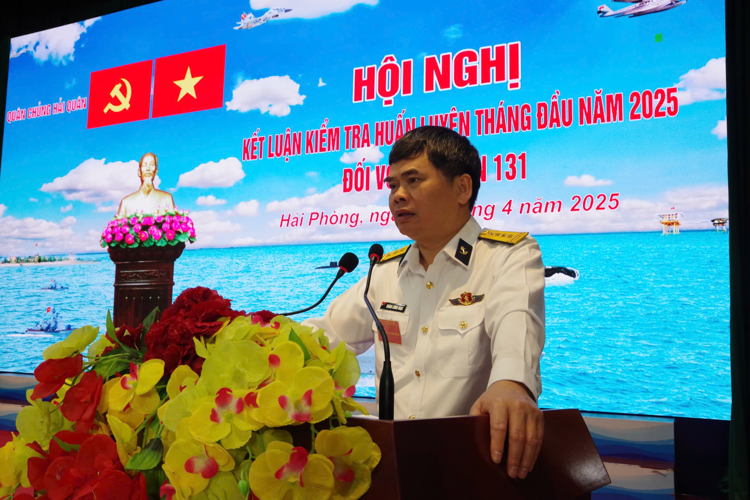 Chiều 9/4, tại Hải Phòng, đoàn công tác của Quân chủng Hải quân do Đại tá Hoàng Lương Ngọc, Phó Tham mưu trưởng Hải quân làm trưởng đoàn đã đến kiểm tra công tác huấn luyện tháng đầu năm 2025 tại Lữ đoàn 131.