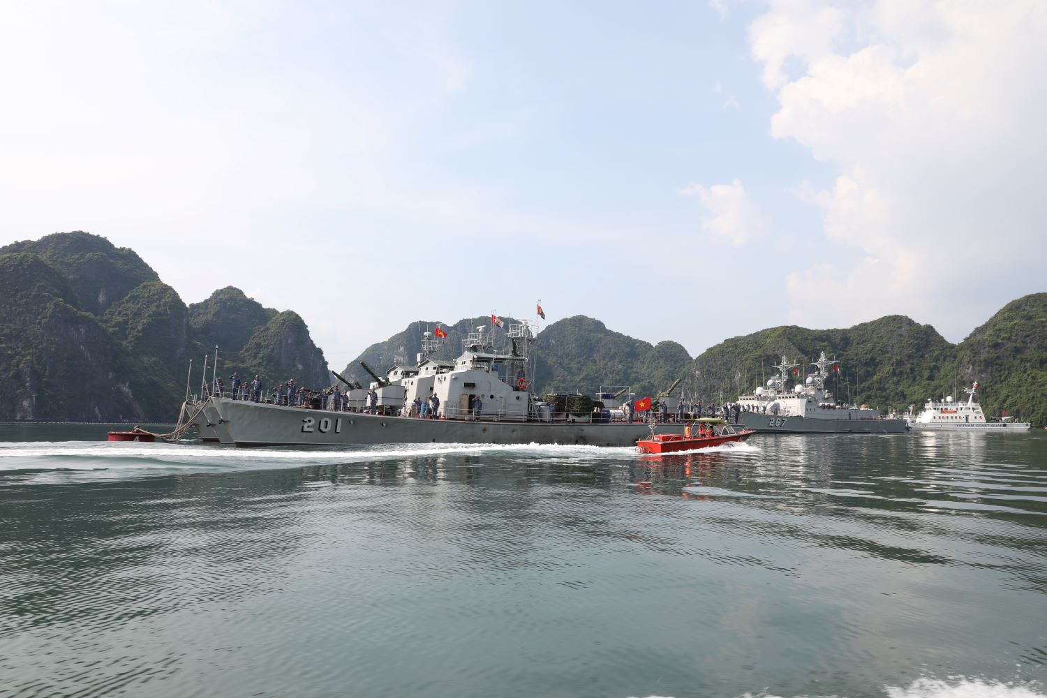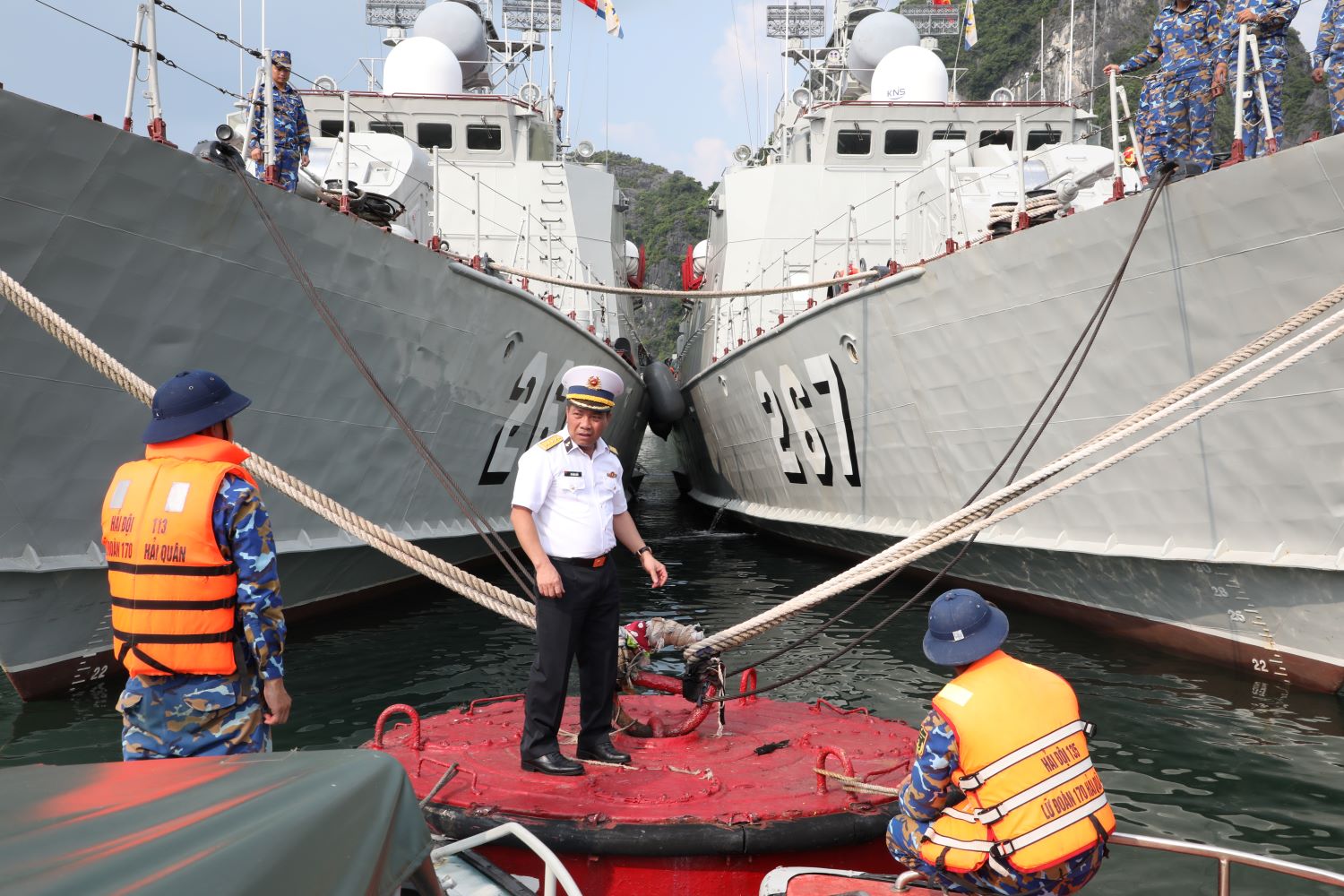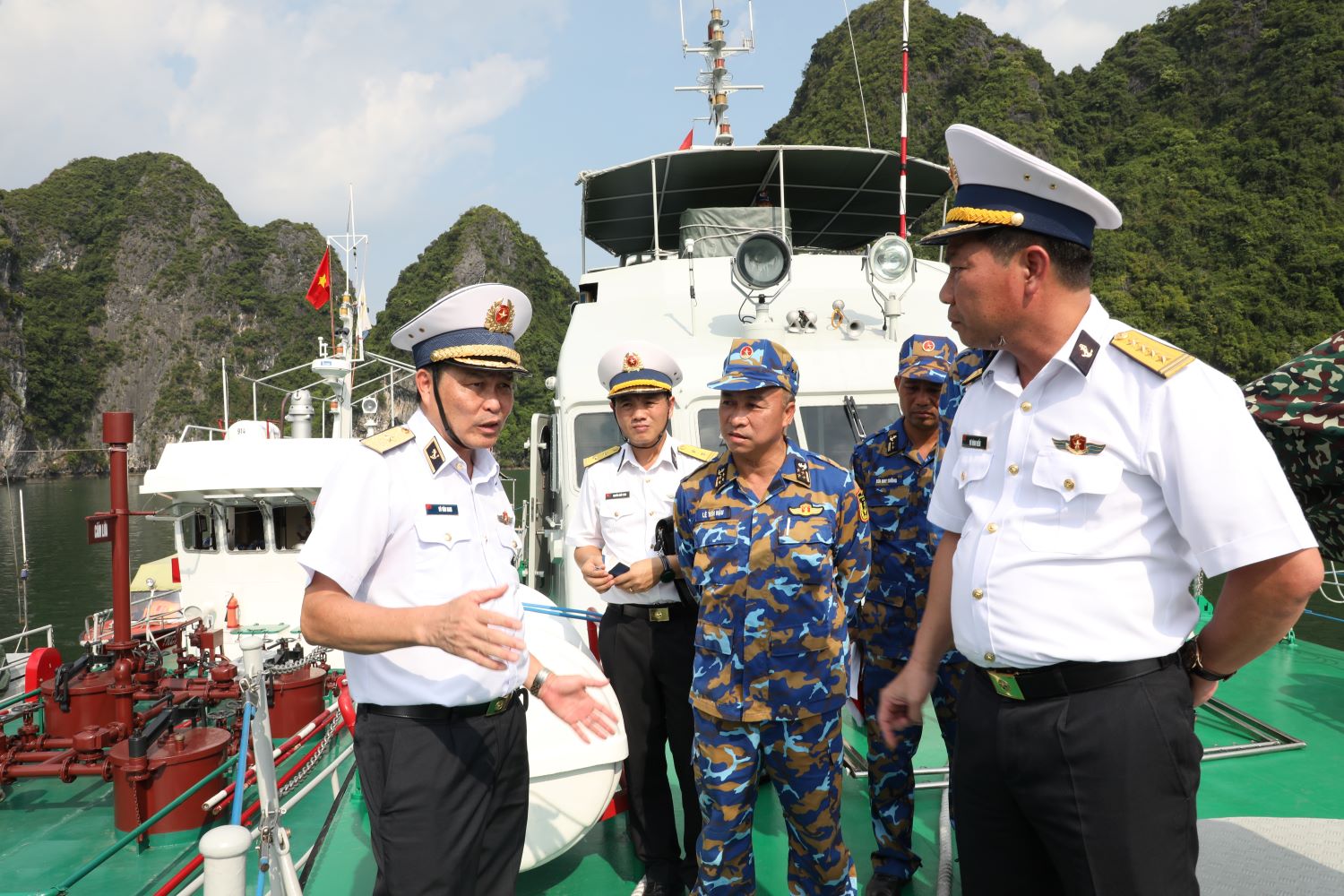 Tham gia đoàn công tác có Đại tá Nguyễn Như Hải, Phó Chủ nhiệm Hậu cần Hải quân; Chuẩn Đô đốc Vũ Văn Nam, Tư lệnh Vùng 1 Hải quân; đại diện các cơ quan chức năng Bộ Tư lệnh Hải quân.