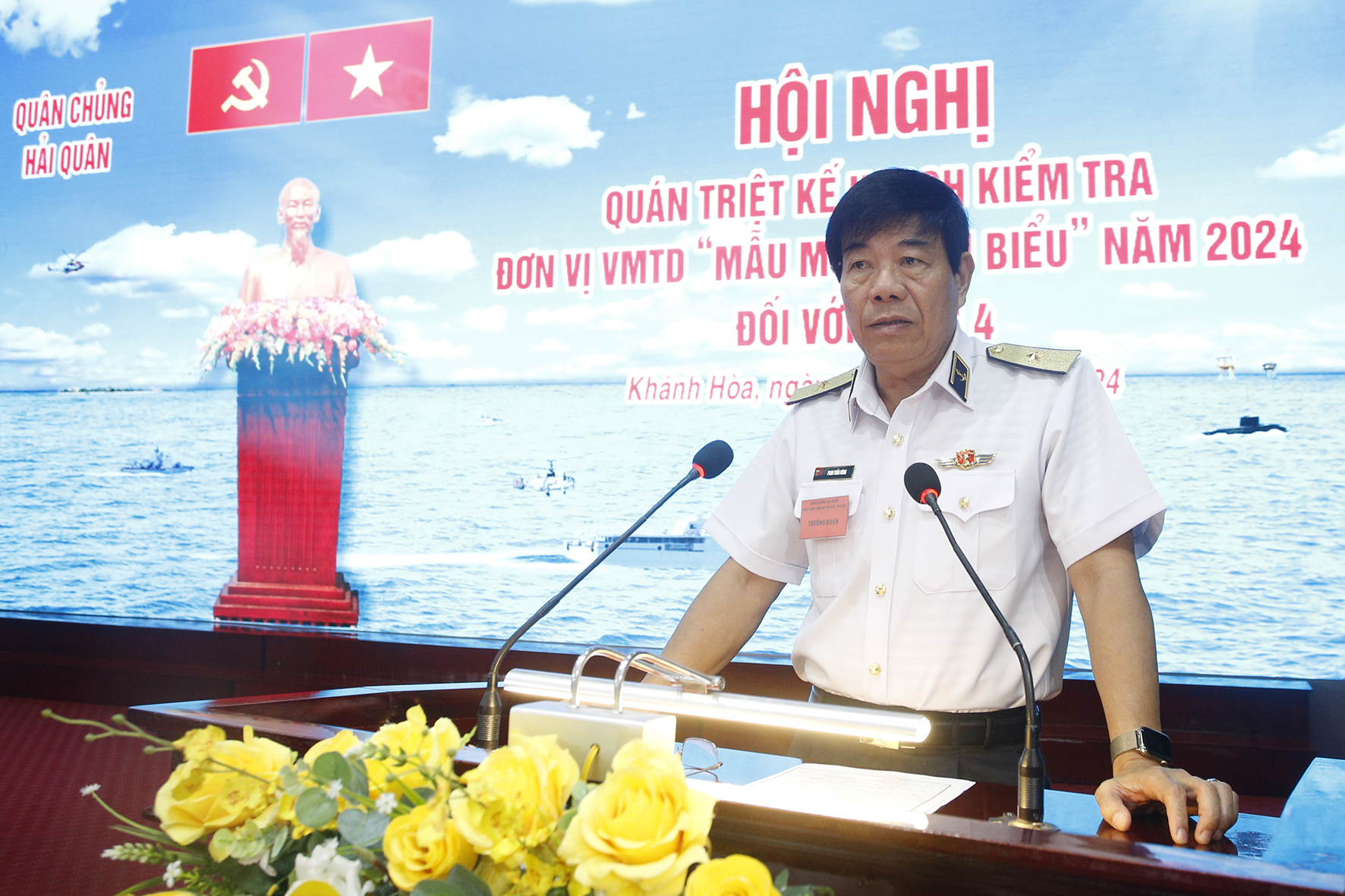 Sáng 22/11, tại TP. Cam Ranh, tỉnh Khánh Hòa, đoàn công tác của Quân chủng Hải quân do Chuẩn Đô đốc Phan Tuấn Hùng, Phó Tư lệnh Hải quân làm trưởng đoàn đã đến kiểm tra đơn vị VMTD mẫu mực, tiêu biểu năm 2024 đối với Vùng 4. Tham gia đoàn công tác có thủ trưởng Bộ Tham mưu, Cục Chính trị, Cục Hậu cần - Kỹ thuật và các cơ quan chức năng của Quân chủng.