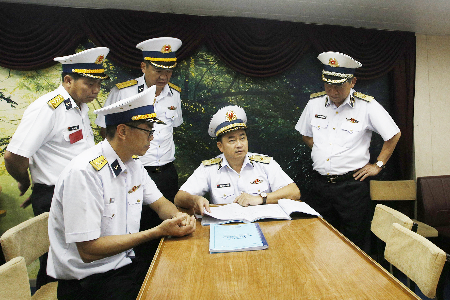 Tham gia đoàn công tác có Chuẩn Đô đốc Đoàn Văn Chiều, Chủ nhiệm chính trị Hải quân; thủ trưởng Bộ Tham mưu, Cục Hậu cần, Cục Kỹ thuật và các cơ quan chức năng Quân chủng.