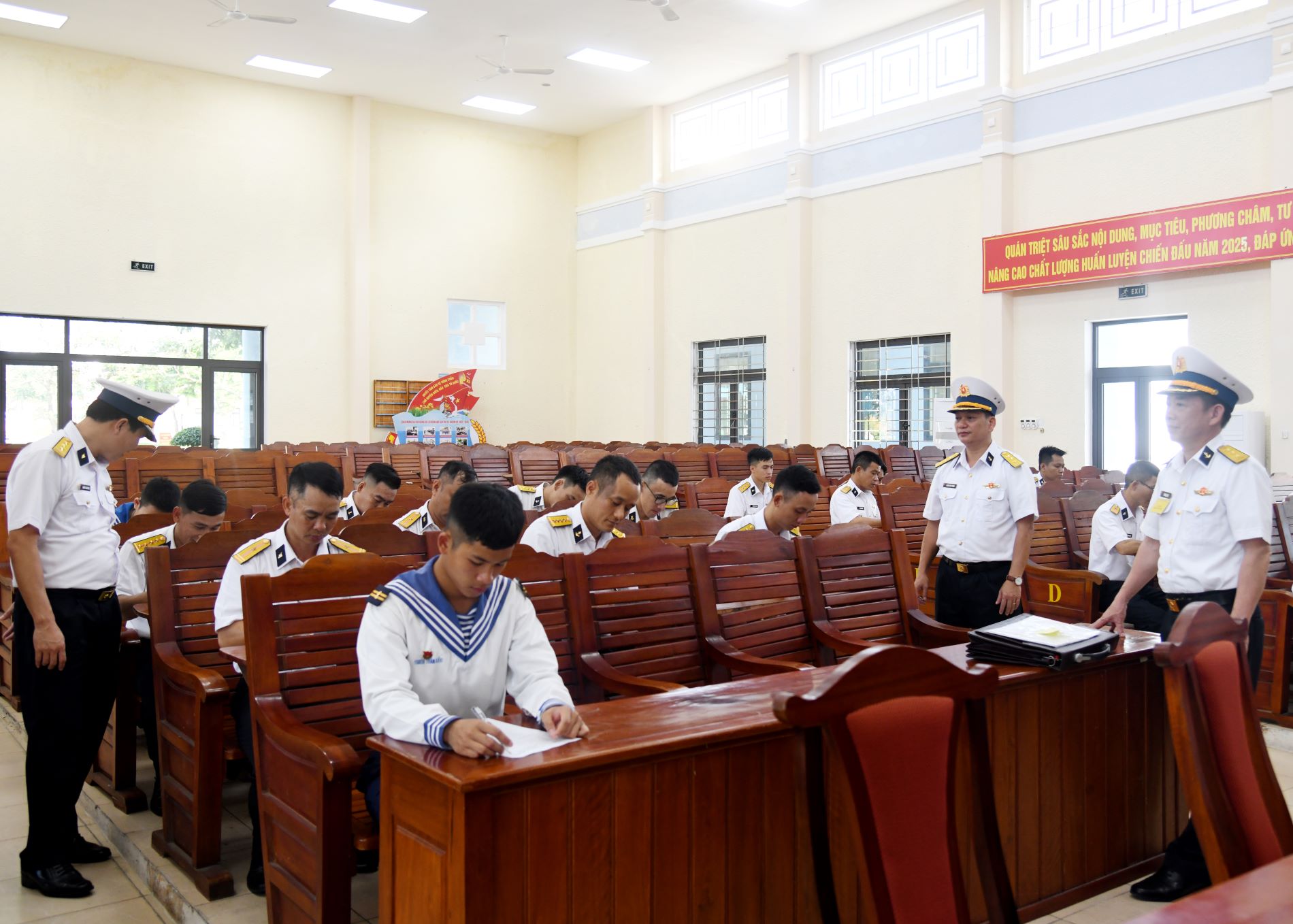 Đoàn cũng đã kiểm tra thực hành thao tác các bảng bố trí trên tàu; công tác điều lệnh, rèn luyện thể lực, lễ tiết tác phong quân nhân; văn kiện công tác đảng, công tác chính trị; việc đăng ký thống kê tình hình tư tưởng chính trị của bộ đội; thực hành thông qua bài giảng của cán bộ chính trị; công tác bảo quản, bảo dưỡng VKTB, bảo đảm vật chất trang bị…