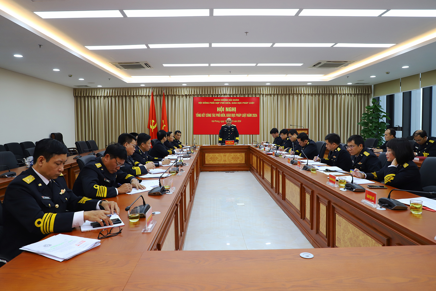 Sáng 12/12 tại Hải Phòng, Quân chủng Hải quân tổ chức Hội nghị tổng kết công tác phổ biến, giáo dục pháp luật (PBGDPL) năm 2024. Chuẩn Đô đốc Đỗ Văn Yên, Phó Chính ủy Hải quân, Chủ tịch Hội đồng phối hợp PBGDPL Quân chủng chủ trì.