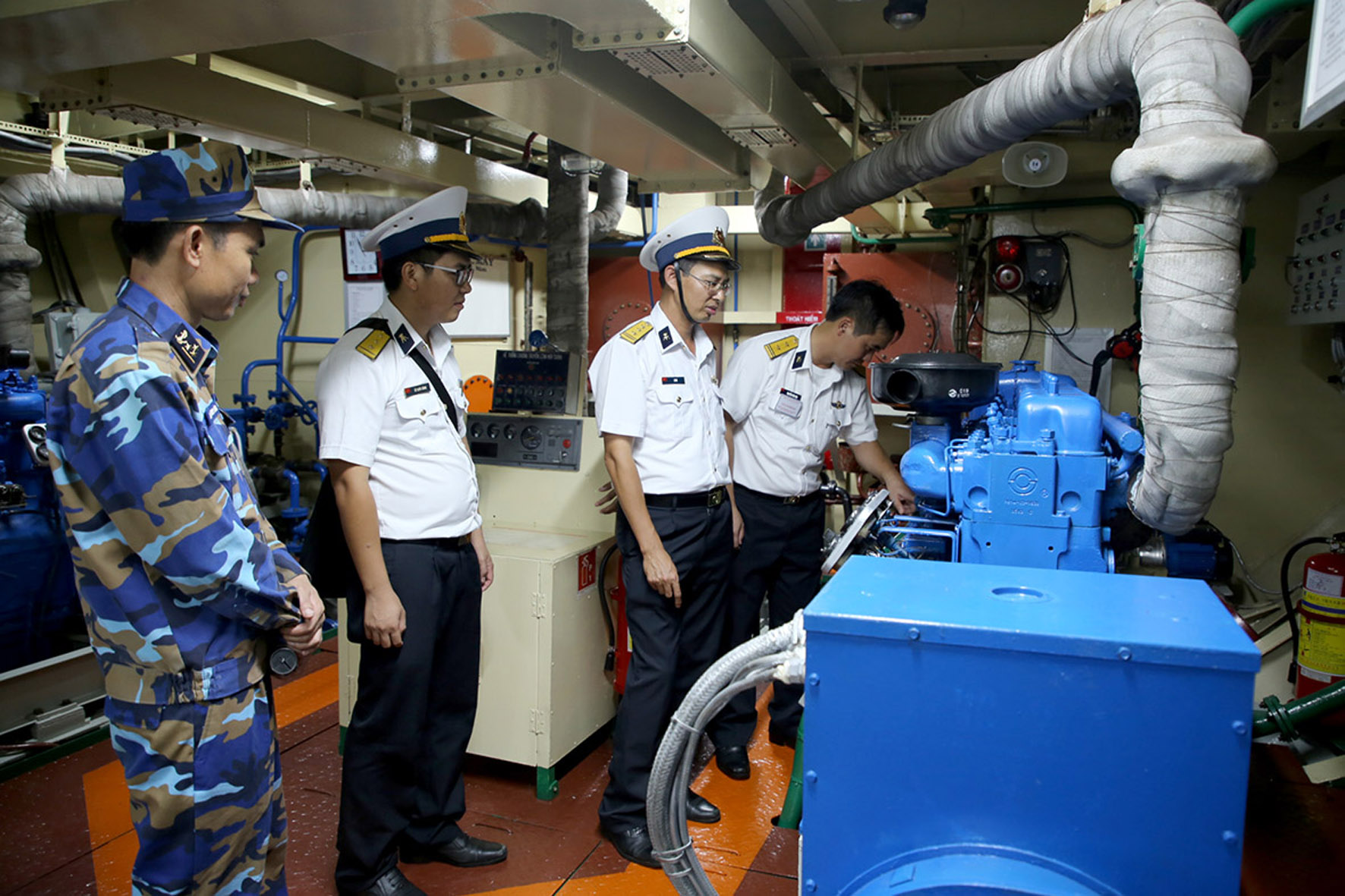 Cán bộ Cục Kỹ thuật kiểm tra sửa chữa tàu tại Hải đoàn 129, Quân cảng Sài Gòn