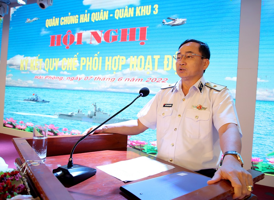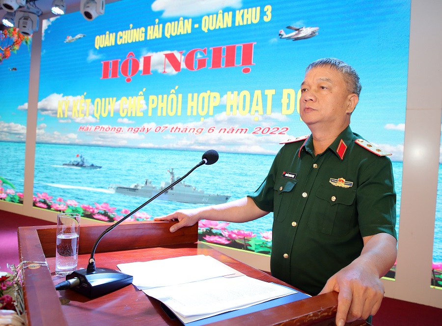 Tư lệnh Hải quân khẳng định: Quân chủng Hải quân luôn cảm ơn sự quan tâm phối hợp, hiệp đồng chặt chẽ giữa các lực lượng, các địa phương trên cả nước, đặc biệt là Quân khu 3 - địa bàn đóng quân của Bộ Tư lệnh Hải quân. Công tác phối hợp hoạt động giữa Quân chủng Hải quân và Quân khu 3 từ trước tới nay luôn là nét đẹp truyền thống, là tình cảm sâu nặng. Việc ký quy chế phối hợp hoạt động hôm nay thể hiện trách nhiệm chính trị cao của hai bên trong sự nghiệp xây dựng và bảo vệ Tổ quốc, làm sâu sắc hơn mối quan hệ giữa hai lực lượng.