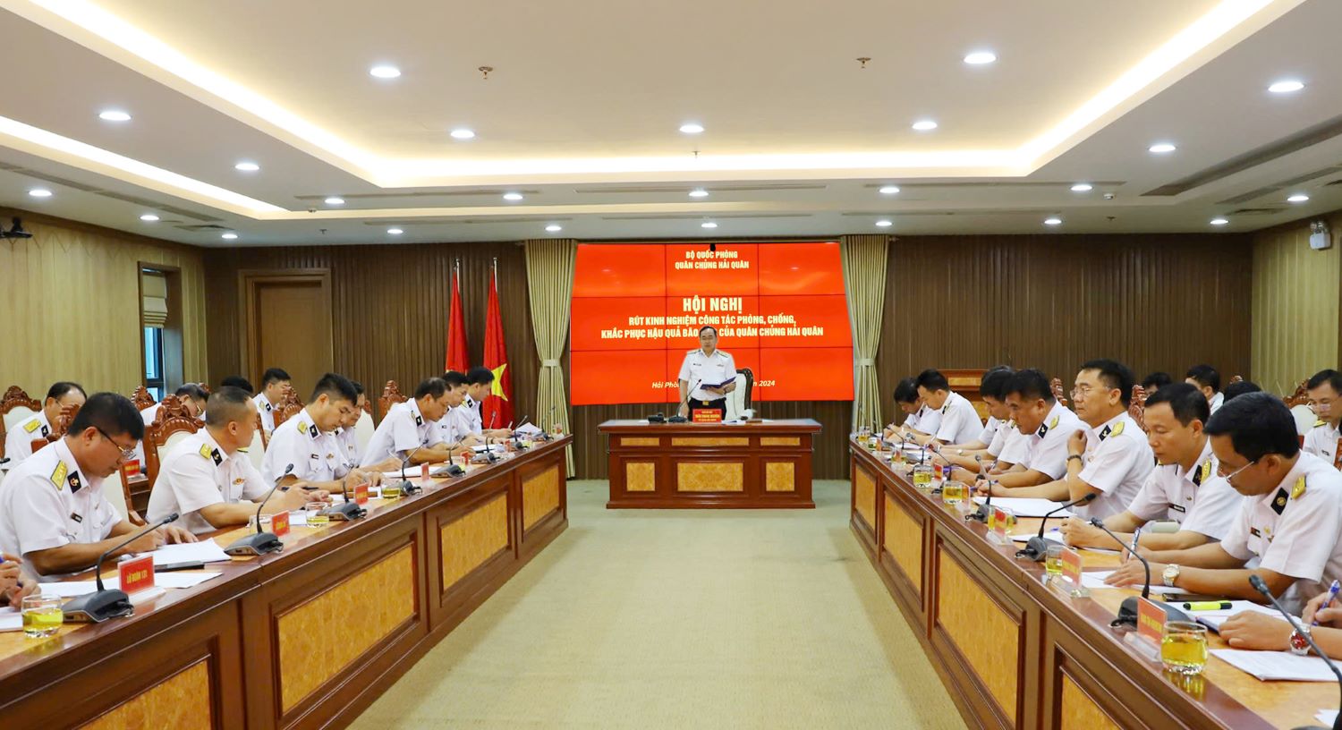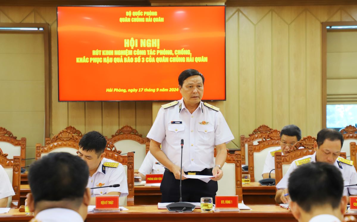 Chiều 17/9, tại Hải Phòng, Quân chủng Hải quân tổ chức Hội nghị rút kinh nghiệm công tác phòng, chống, khắc phục hậu quả bão số 3. Phó Đô đốc Trần Thanh Nghiêm, Ủy viên Trung ương Đảng, Tư lệnh Hải quân chủ trì.