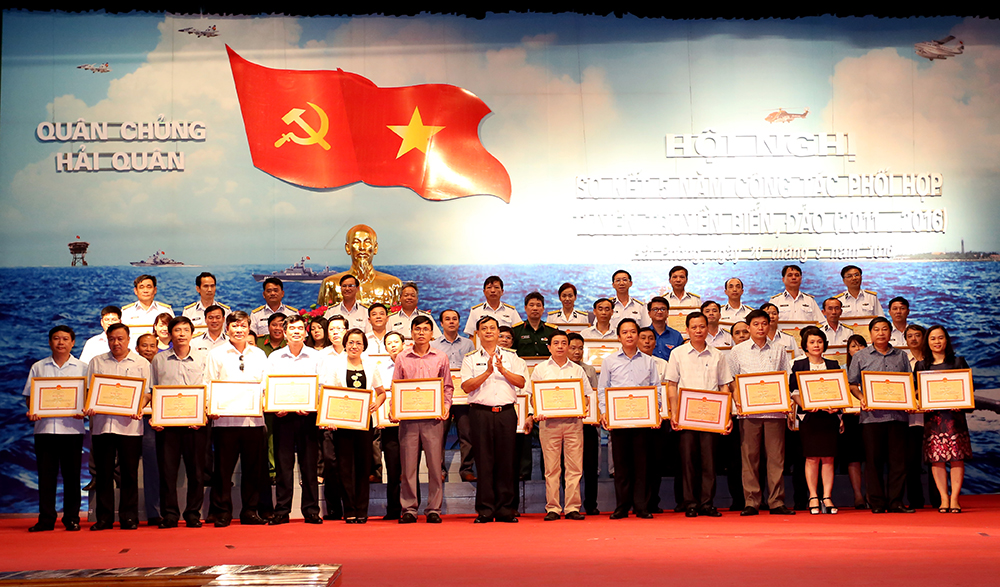 Nhân dịp này, 55 tập thể và 50 cá nhân có thành tích xuất sắc trong công tác phối hợp TTBĐ giai đoạn 2011-2016 đã được Quân chủng Hải quân tặng bằng khen.
