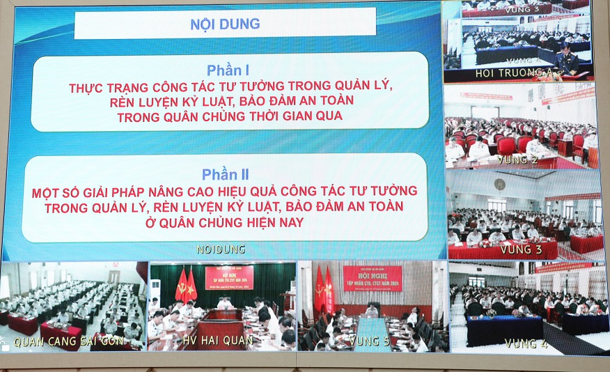 Sáng 16/1, Quân chủng Hải quân đã tổ chức Hội nghị tập huấn CTĐ, CTCT năm 2024. Hội nghị được tổ chức bằng hình thức trực tiếp tại hội trường Bộ Tư lệnh Hải quân (TP.Hải Phòng) kết hợp với trực tuyến tới 7 điểm cầu.