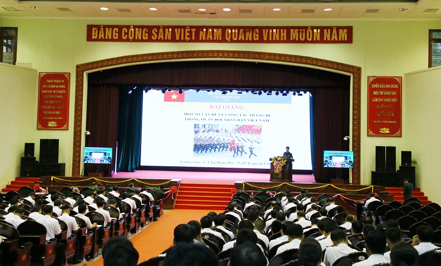 Đại tá Trịnh Phúc Kiên, Trưởng phòng Quân lực Hải quân lên lớp nội dung "Một số vấn đề cơ bản về công tác quân lực của Quân chủng Hải quân"