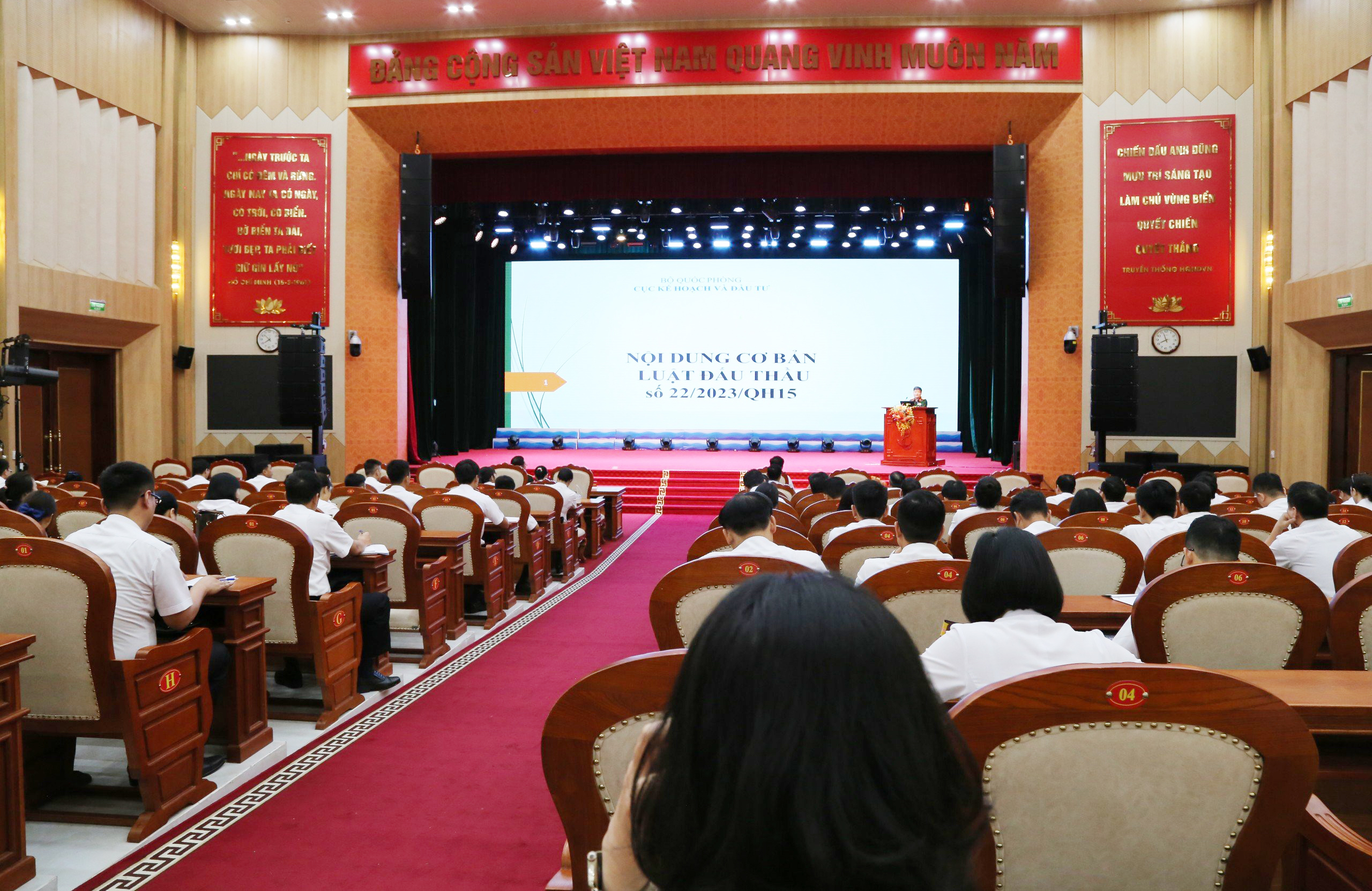 Các đồng chí tham gia tập huấn đã được cán bộ Trung tâm Quản lý đấu thầu Quốc gia (Bộ Kế hoạch và Đầu tư) và cán bộ của Cục Kế hoạch và Đầu tư (Bộ Quốc phòng) giới thiệu cụ thể quy định của Luật Đấu thầu số 22/2023/QH15 đối với trách nhiệm của chủ đầu tư, tổ chuyên gia, tổ thẩm định và những nội dung lựa chọn nhà thầu trong Bộ Quốc phòng.