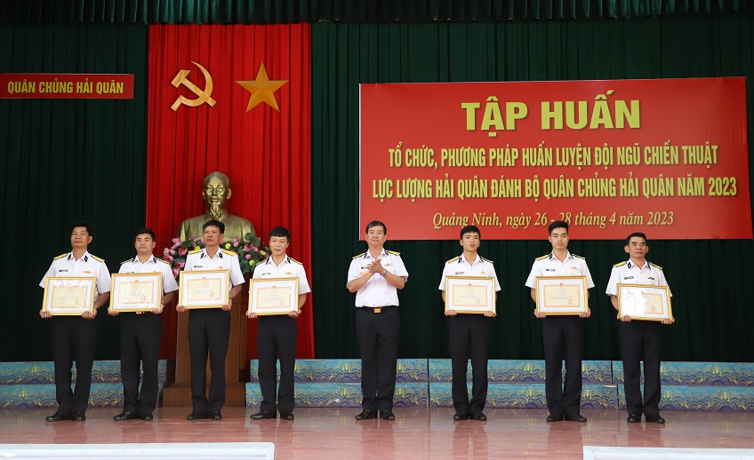 Sáng 28/4, tại Quảng Ninh, Quân chủng Hải quân bế mạc tập huấn tổ chức, phương pháp huấn luyện đội ngũ chiến thuật lực lượng hải quân đánh bộ năm 2023.