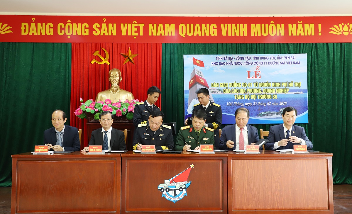 Ngày 25-2, tại Hải Phòng, đại diện các tỉnh Yên Bái, Hưng Yên, Bà Rịa-Vũng Tàu; Kho bạc Nhà nước Việt Nam, Tổng Công ty Đường sắt Việt Nam và Quân chủng Hải quân tổ chức lễ bàn giao 6 xuồng CQ-01 tặng bộ đội Trường Sa.