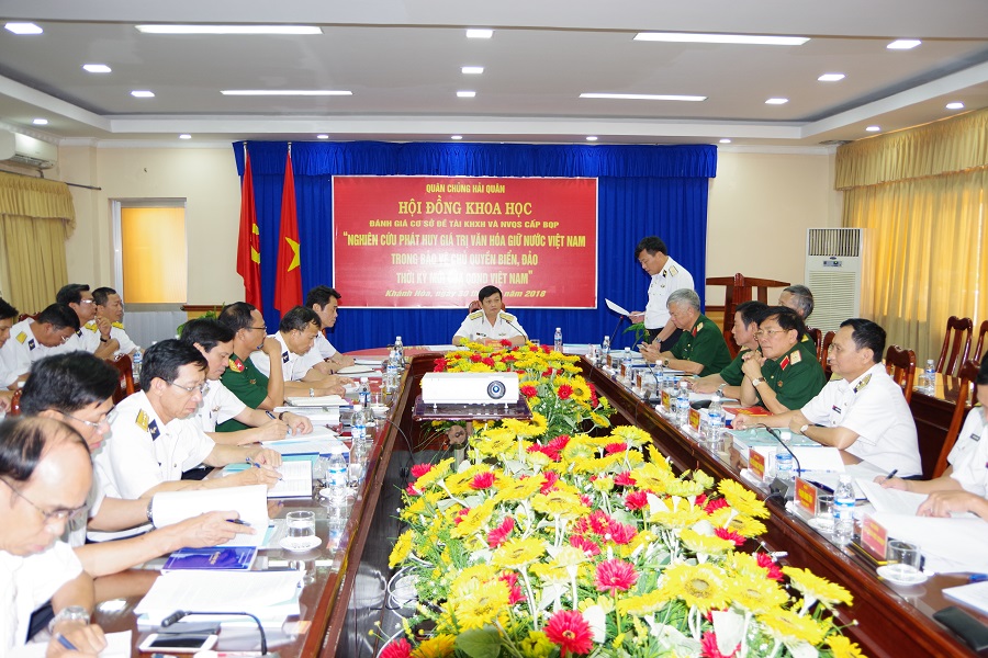 Ngày 30-8, tại Học viện Hải quân (tỉnh Khánh Hòa), Hội đồng KHXH&NV quân sự Quân chủng Hải quân do Phó Đô đốc Trần Hoài Trung, Bí thư Đảng ủy, Chính ủy Hải quân làm Chủ tịch tổ chức đánh giá cấp cơ sở đề tài cấp Bộ Quốc phòng: “Nghiên cứu phát huy giá trị văn hóa giữ nước Việt Nam trong bảo vệ chủ quyền biển, đảo thời kỳ mới của Quân đội nhân dân Việt Nam”. Đề tài do Chuẩn Đô đốc Phạm Văn Luyện, Phó Chủ nhiệm Chính trị Hải quân làm Chủ nhiệm.