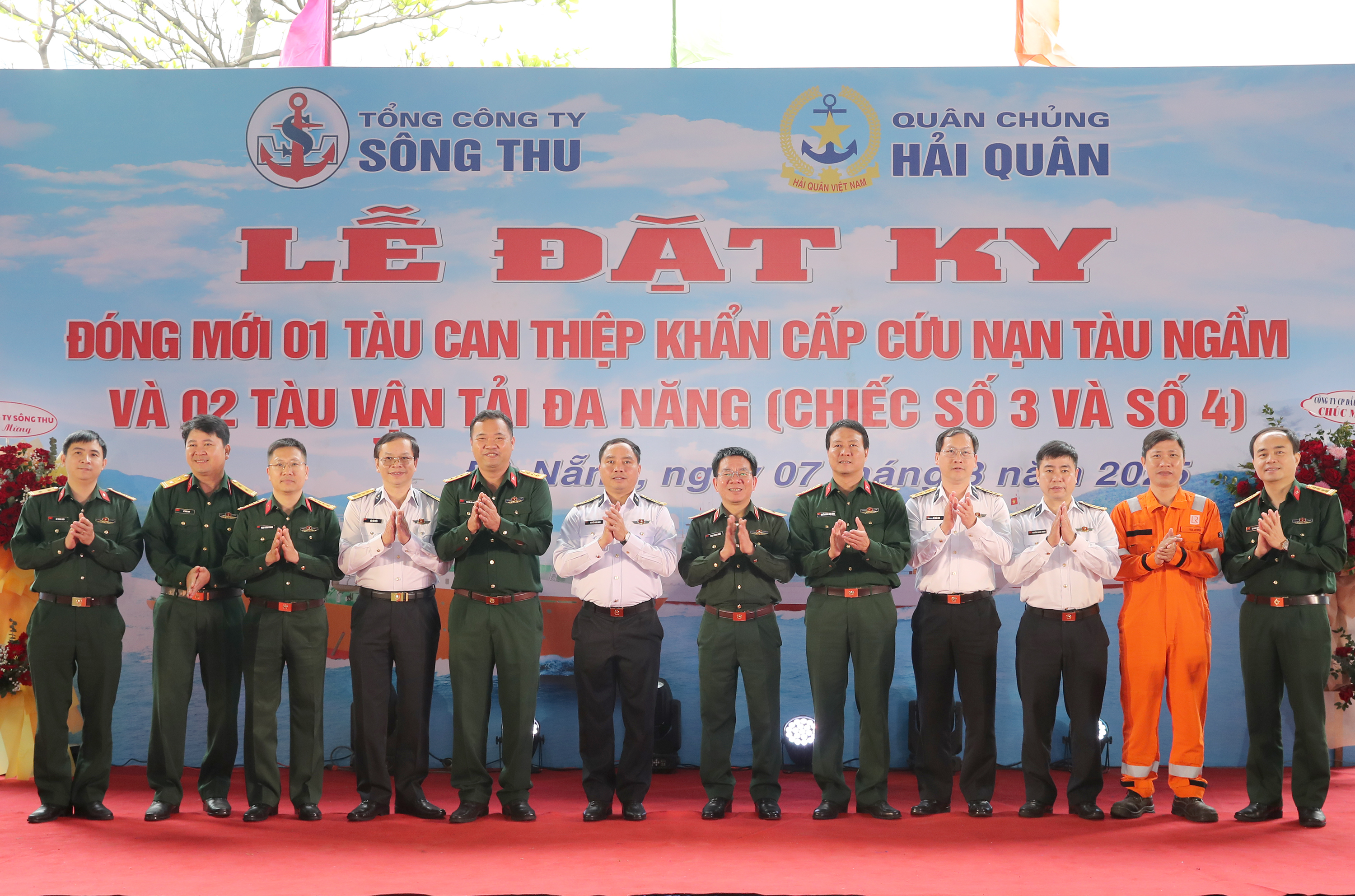 Sáng 7/3, tại TP Đà Nẵng, Tổng công ty Sông Thu thuộc Tổng cục Công nghiệp quốc phòng phối hợp với Quân chủng Hải quân tổ chức Lễ đặt ky đóng mới tàu can thiệp khẩn cấp cứu nạn tàu ngầm và tàu vận tải đa năng theo hợp đồng đã ký kết.