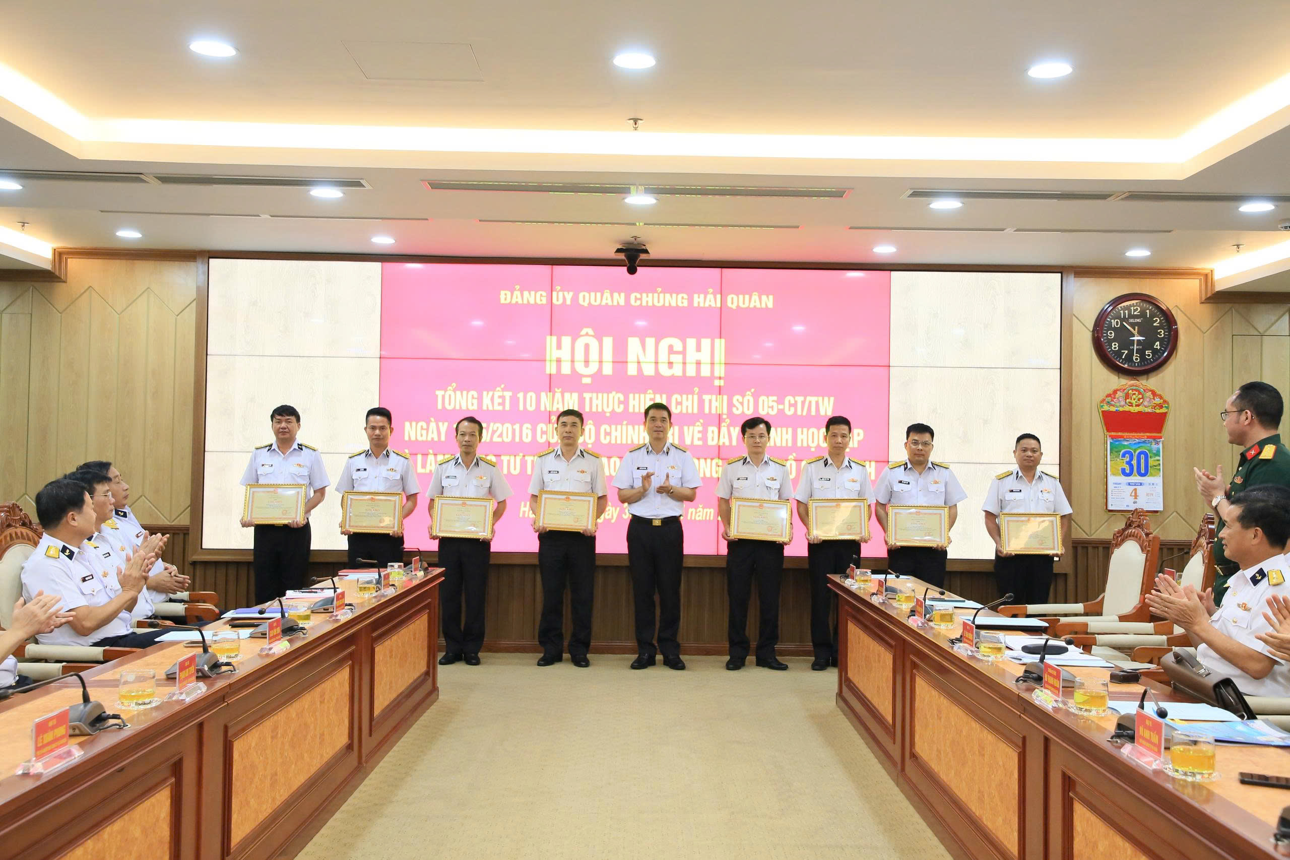Tại hội nghị, Quân chủng Hải quân trao Bằng khen cho 30 tập thể, 29 cá nhân đã có thành tích xuất sắc trong 10 năm thực hiện Chỉ thị số 05 của Bộ Chính trị.