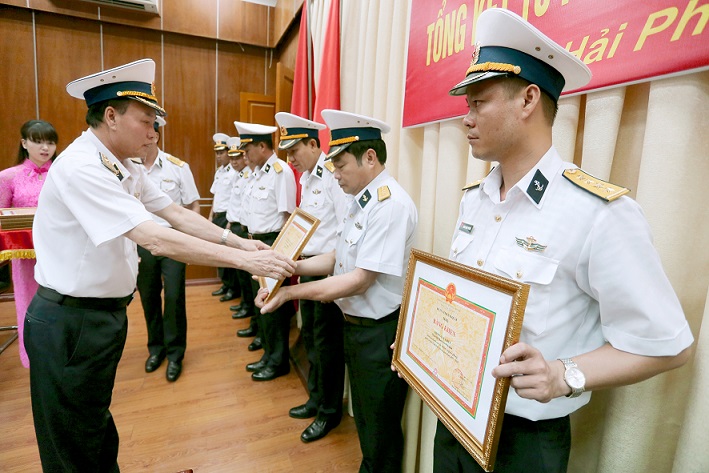 Chuẩn Đô đốc Phạm Xuân Điệp trao thưởng cho các tập thể và cá nhân có thành tích xuất sắc