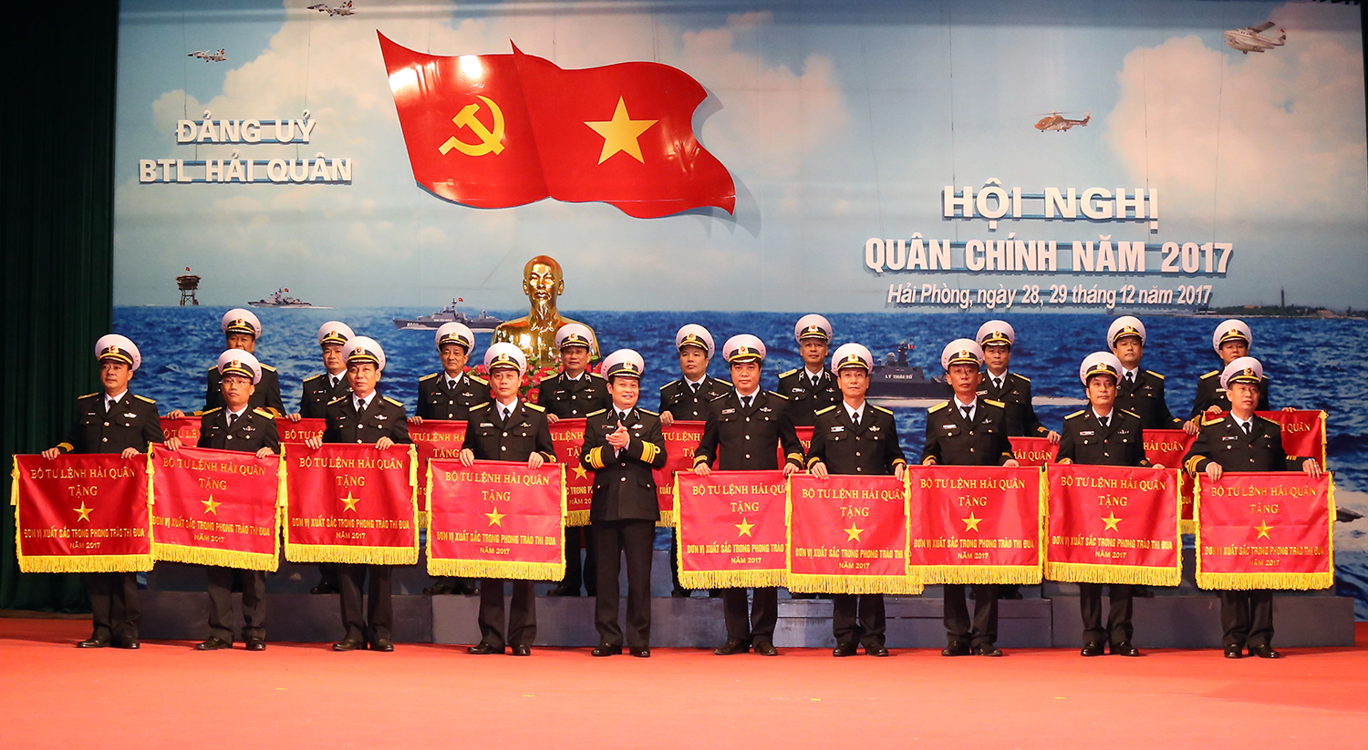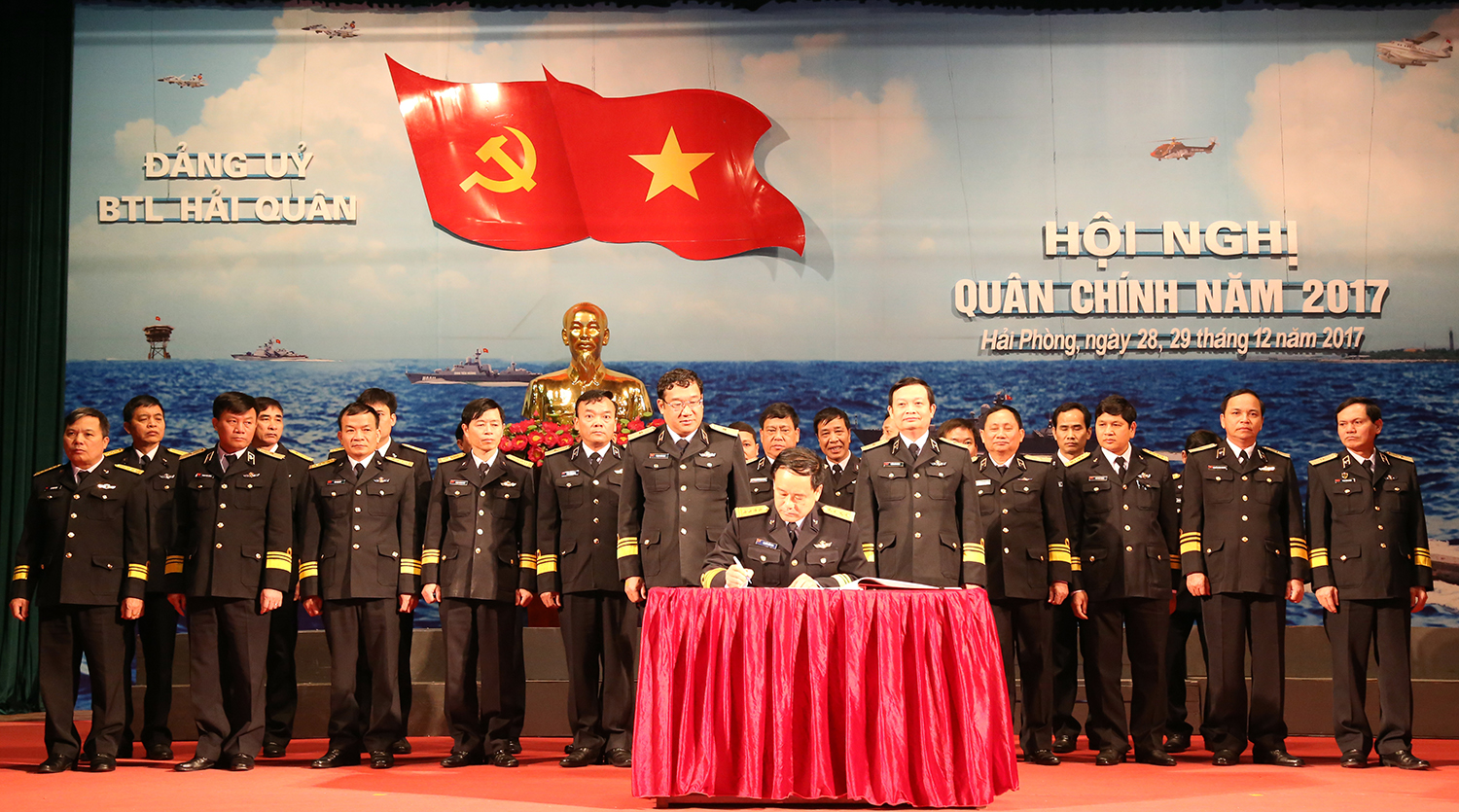 Sáng 29-12, tại Hải Phòng, Quân chủng Hải quân tổ chức tổng kết phong trào thi đua Quyết thắng năm 2017, phát động phong trào thi đua Quyết thắng năm 2018. Thiếu tướng Trần Hoài Trung, Bí thư Đảng ủy, Chính ủy Hải quân, Chủ tịch Hội đồng thi đua-khen thưởng Quân chủng đọc báo cáo tổng kết và phát động phong trào thi đua.