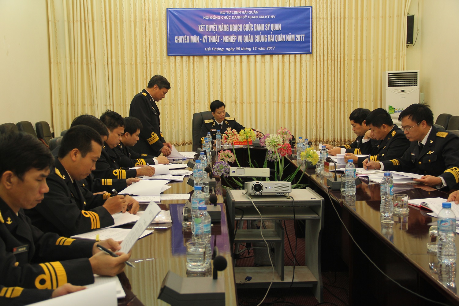 Sáng 6-12, tại Hải Phòng, Hội đồng xét duyệt, nâng ngạch và bãi miễn chức danh sĩ quan chuyên môn-kỹ thuật-nghiệp vụ Quân chủng Hải quân đã tổ chức Hội nghị xét duyệt, đề nghị công nhận chức danh cho các đối tượng trong Quân chủng năm 2017.