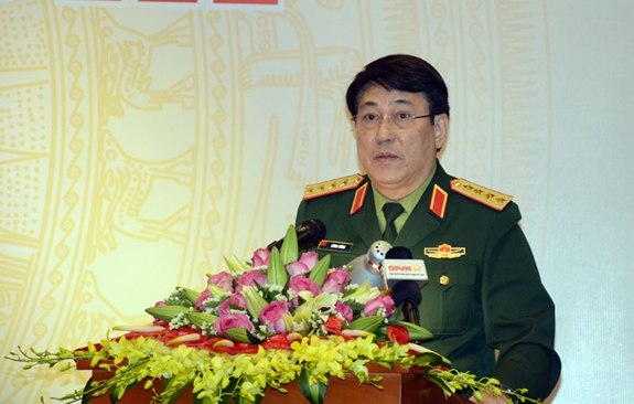 Đại tướng Ngô Xuân Lịch phát biểu tại buổi gặp mặt. Ảnh: Việt Cường