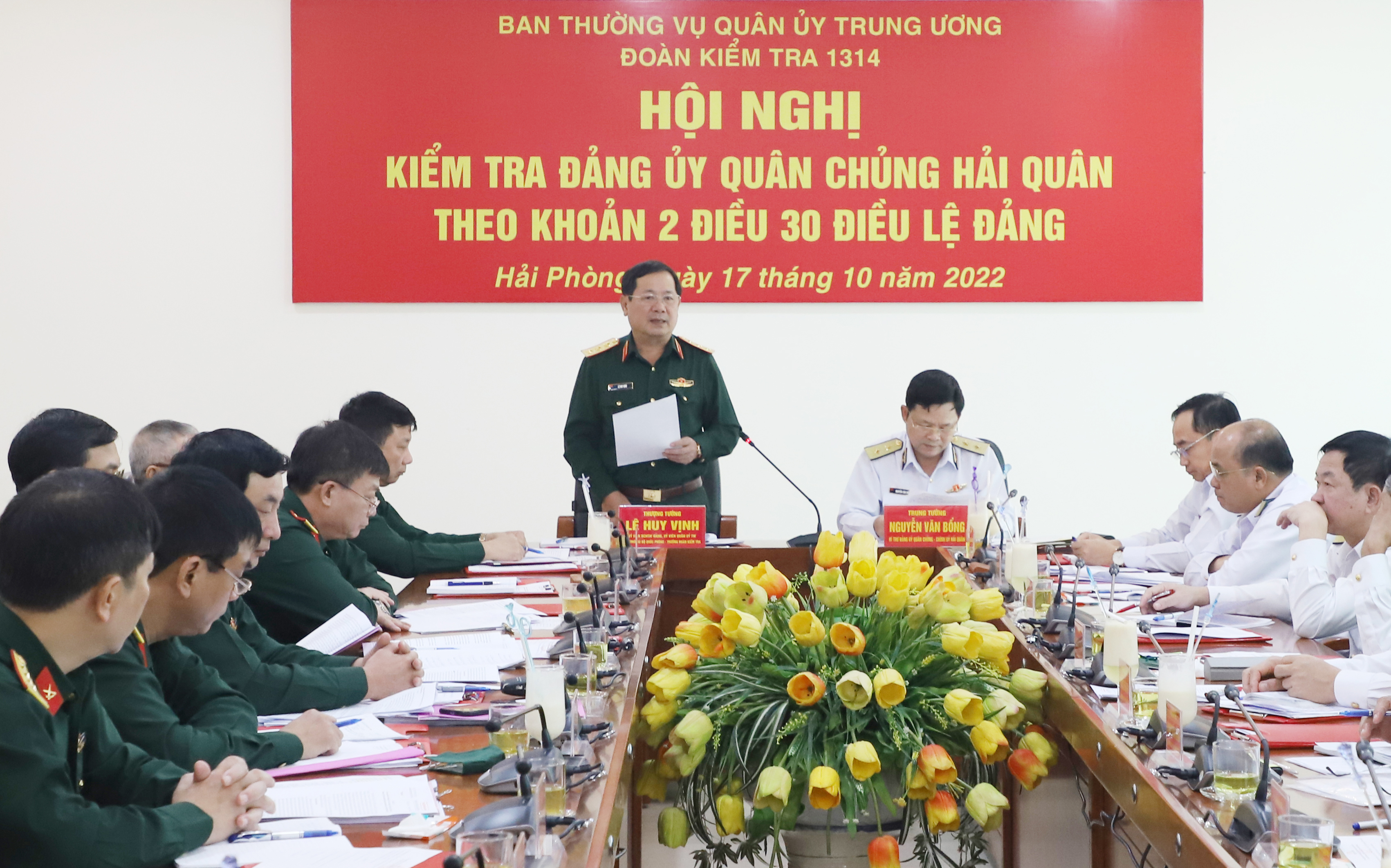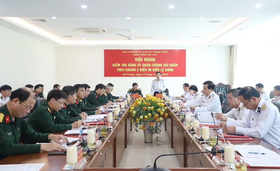 Ngày 17/10, tại TP. Hải Phòng, Ban Thường vụ Quân ủy Trung ương tiến hành Hội nghị kiểm tra Đảng ủy Quân chủng Hải quân theo Khoản 2, Điều 30, Điều lệ Đảng. Thượng tướng Lê Huy Vịnh, Ủy viên Trung ương Đảng, Ủy viên Quân ủy Trung ương, Thứ trưởng Bộ Quốc phòng, Trưởng đoàn kiểm tra dự, chỉ đạo. Trung tướng Nguyễn Văn Bổng, Bí thư Đảng ủy, Chính ủy Hải quân chủ trì hội nghị.