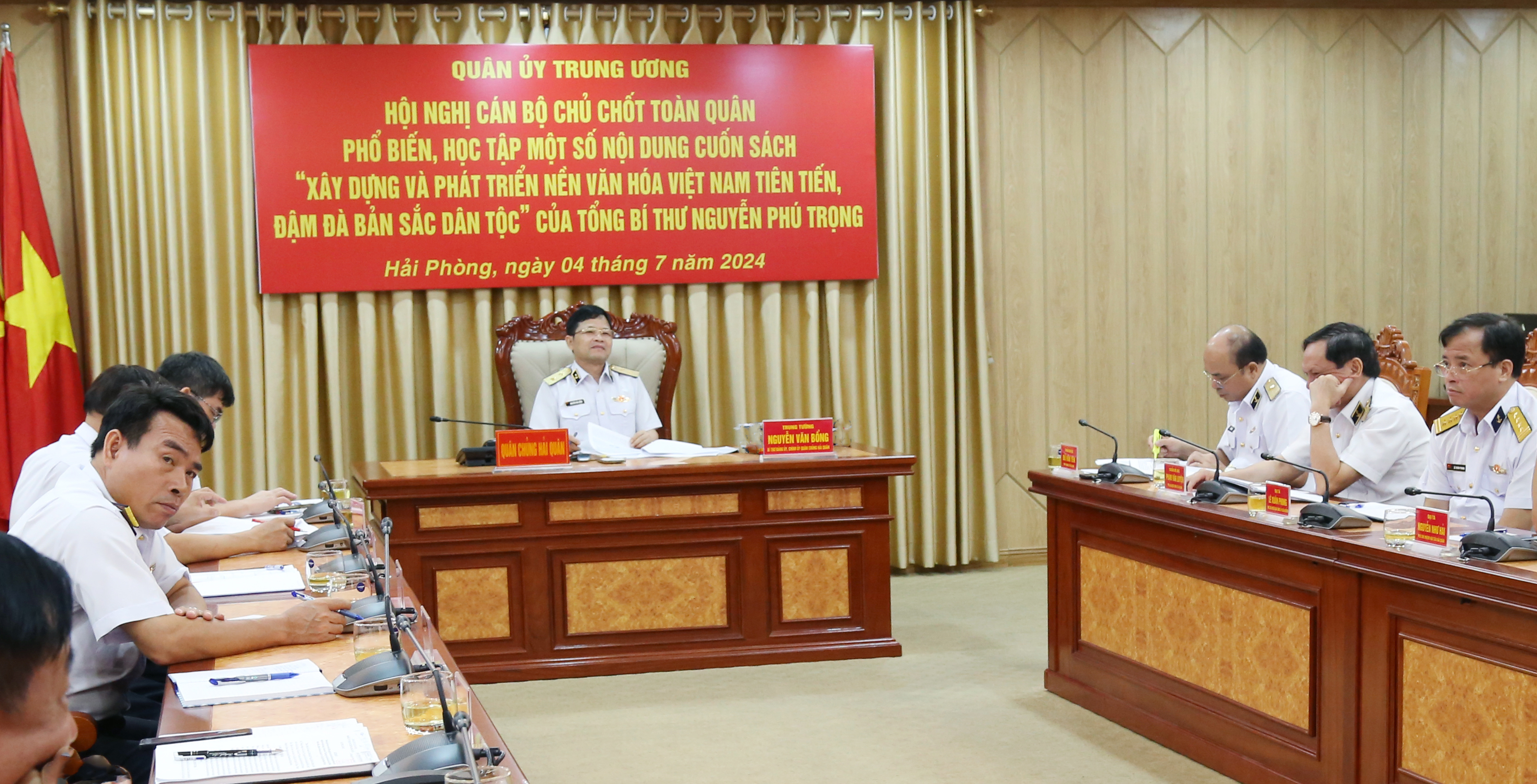 Sáng 4/7, tại Hà Nội, Đại tướng Phan Văn Giang, Ủy viên Bộ Chính trị, Phó Bí thư Quân ủy Trung ương, Bộ trưởng Bộ Quốc phòng chủ trì Hội nghị cán bộ chủ chốt toàn quân phổ biến, học tập một số nội dung của cuốn sách "Xây dựng và phát triển nền văn hóa Việt Nam tiên tiến, đậm đà bản sắc dân tộc" của Tổng Bí thư Nguyễn Phú Trọng.