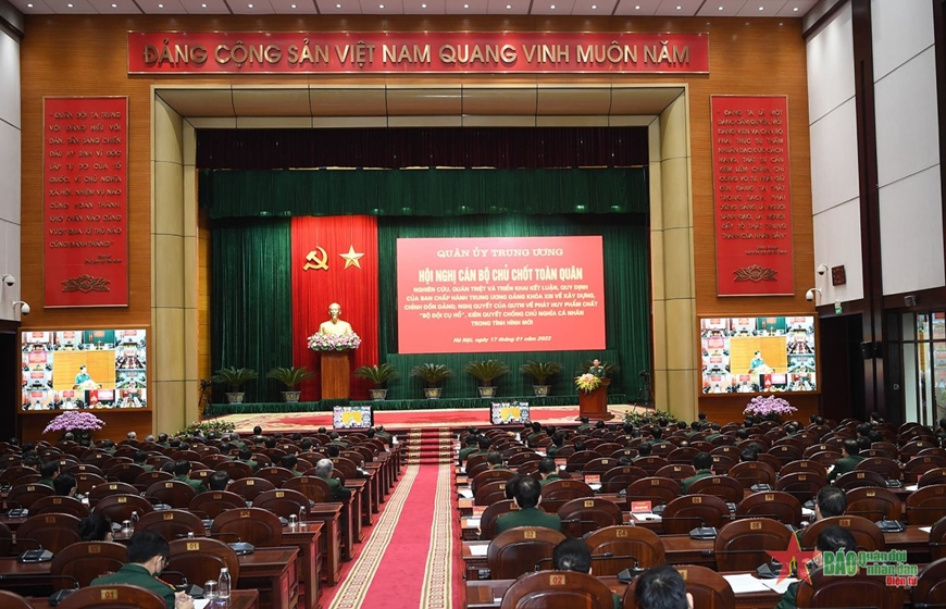 Sáng 17/1, tại Hà Nội, Quân ủy Trung ương tổ chức Hội nghị cán bộ chủ chốt toàn quân nghiên cứu, quán triệt và triển khai kết luận, quy định của Ban Chấp hành Trung ương Đảng Khóa XIII về xây dựng, chỉnh đốn Đảng; Nghị quyết của Quân ủy Trung ương về phát huy phẩm chất “Bộ đội Cụ Hồ” kiên quyết chống chủ nghĩa cá nhân trong tình hình mới. Hội nghị diễn ra theo hình thức trực tiếp kết hợp trực tuyến tới 51 điểm cầu trong toàn quân.