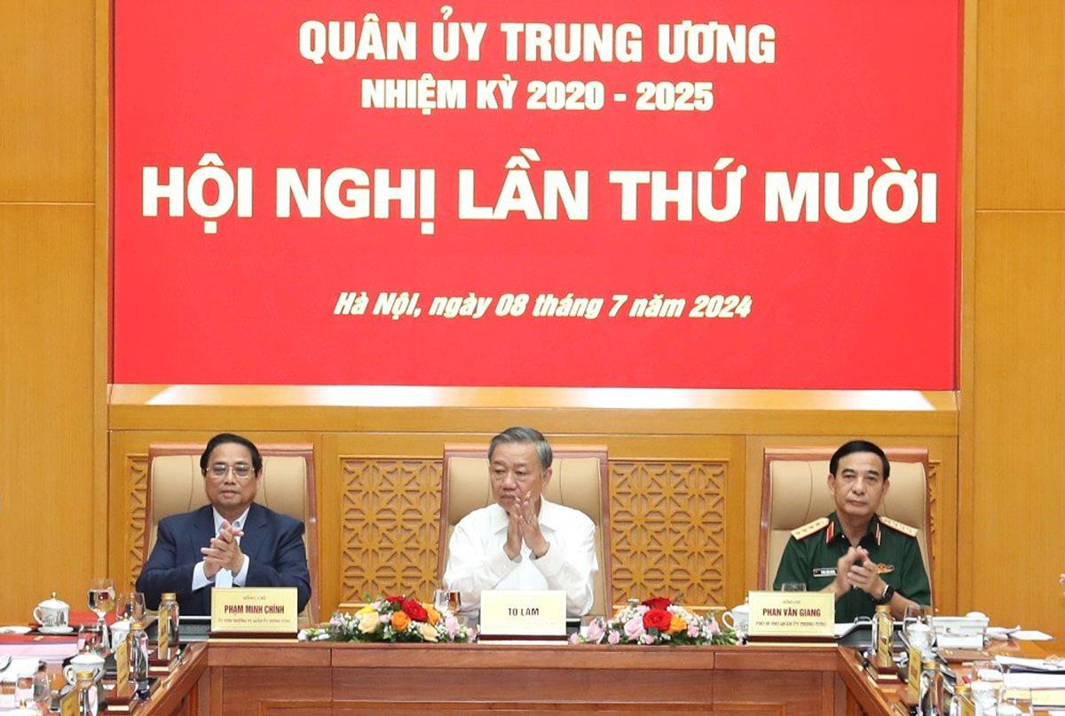 Phát biểu tại hội nghị, Chủ tịch nước Tô Lâm, Thủ tướng Chính phủ Phạm Minh Chính ghi nhận, biểu dương những thành tích, kết quả nổi bật của Quân ủy Trung ương, Bộ Quốc phòng trong thời gian qua.