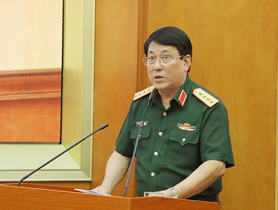 Đại tướng Lương Cường trình bày báo cáo tại hội nghị