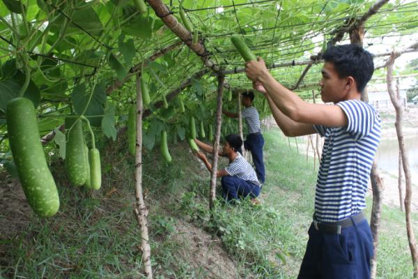 Thu hoạch bầu tại khu tăng gia tập trung ở Tiểu đoàn 563