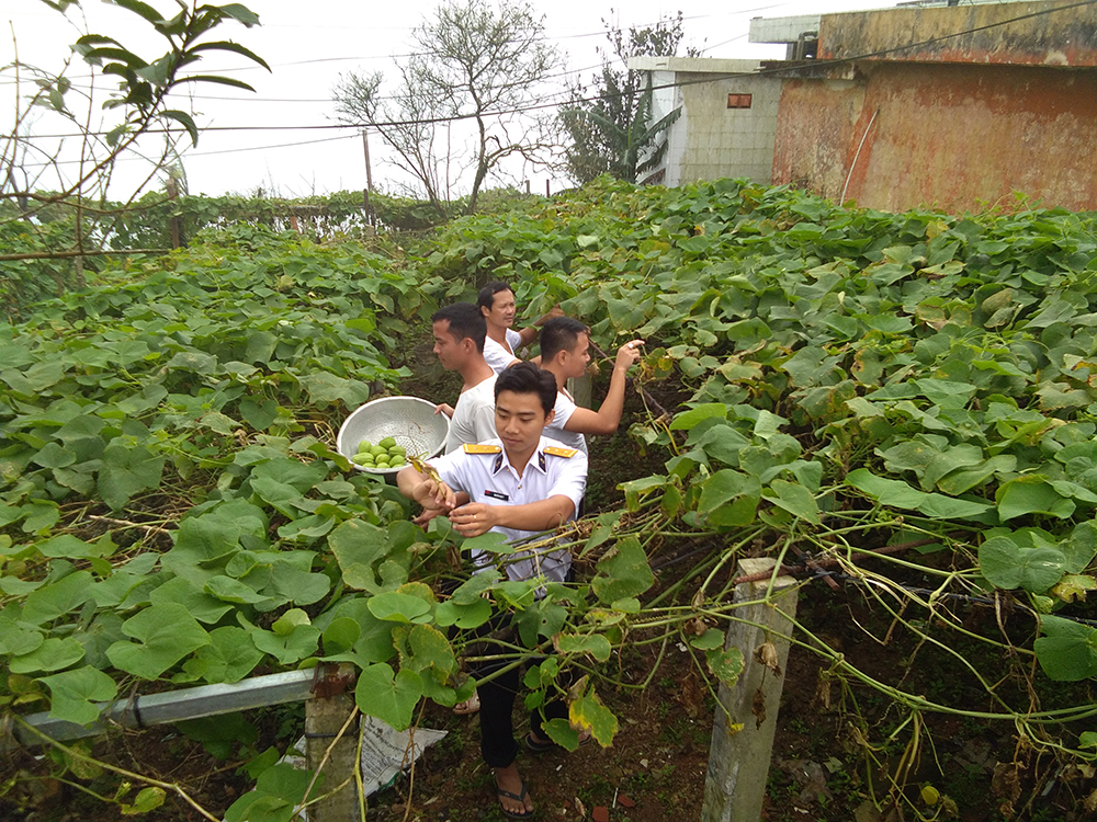 Chủ động xây dựng cơ sở hạ tầng phục vụ cho tăng gia sản xuất, đơn vị đã tích cực tìm kiếm nguồn vốn hỗ trợ xây dựng các bể chứa nước mưa, xây dựng nhà lưới vườn trồng rau khép kín. Giải quyết vấn đề thiếu nước ở khu A, đơn vị đã khuyến khích, vận động bộ đội tích trữ nước đã qua sinh hoạt để phục vụ tưới tiêu. Khi đổi ca trực, mỗi người đều phải gùi theo xe gắn máy một thùng nước 30 lít lấy từ hồ chứa nước An Hải cách khu B của đơn vị chừng 2 km lên. Còn các đồng chí tiếp phẩm cho khu A, 3 lần trong tuần bổ sung thêm được gần 100 lít nước.