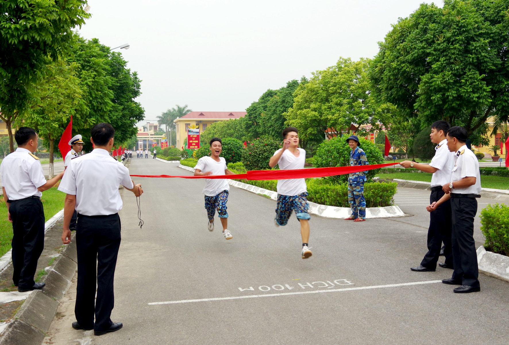 Cán bộ, chiến sĩ Lữ đoàn 679 kiểm tra chạy 100m