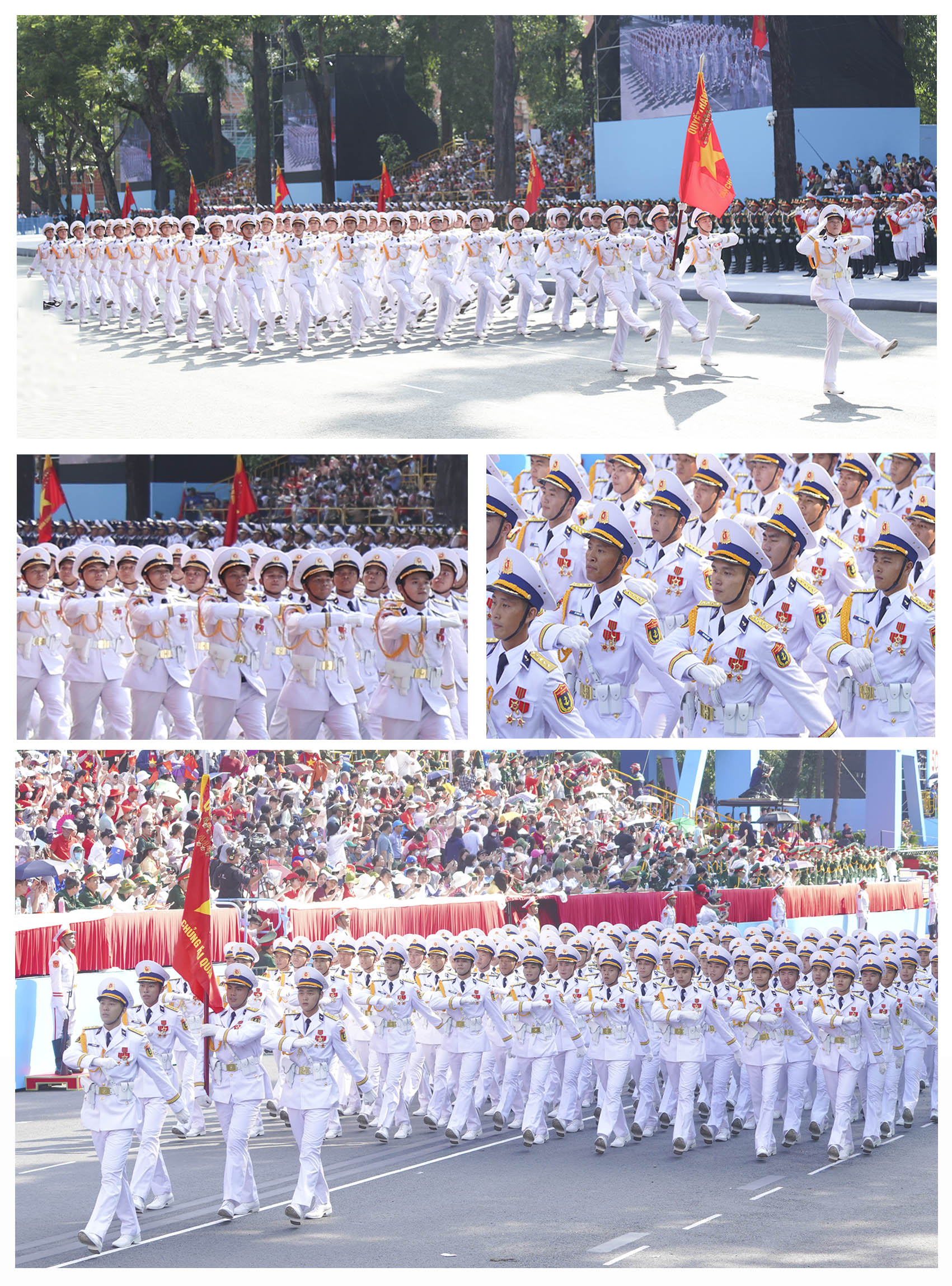 Tự hào với truyền thống “Chiến đấu anh dũng, mưu trí sáng tạo, làm chủ vùng biển, quyết chiến quyết thắng” của Quân chủng Hải quân anh hùng qua 70 năm xây dựng, chiến đấu, trưởng thành, khối sĩ quan Hải quân nhân dân Việt Nam hùng dũng tiến qua lễ đài trong Lễ kỷ niệm 50 giải phóng miền Nam, thống nhất đất nước, khẳng định sức mạnh của một quân chủng chính quy, hiện đại, gánh vác sứ mệnh làm nòng cốt bảo vệ vững chắc chủ quyền biển đảo Tổ quốc trong tình hình mới