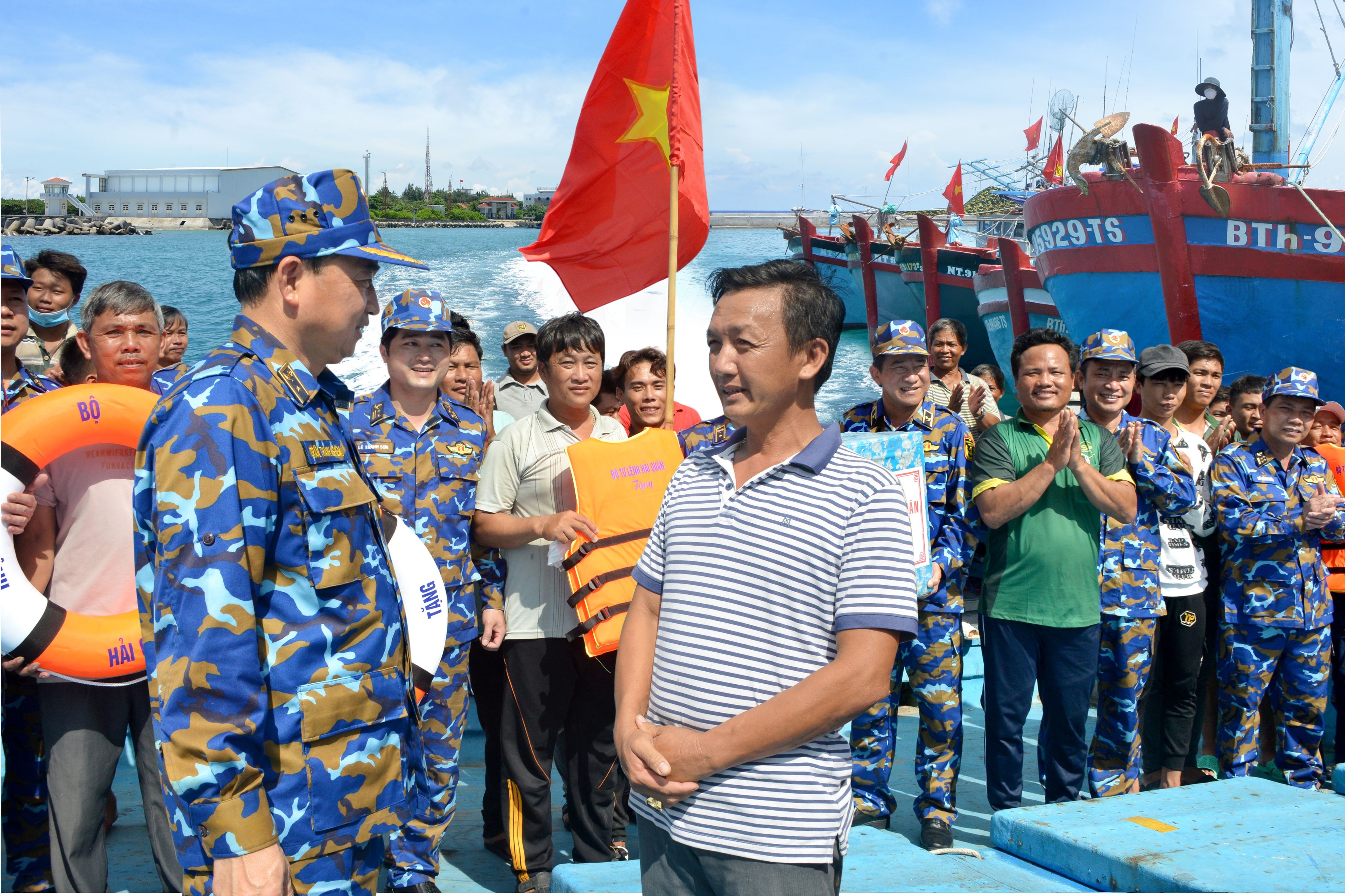 Tư lệnh Hải quân thăm, động viên, tặng cờ ngư dân Trường Sa, tháng 4/2022
