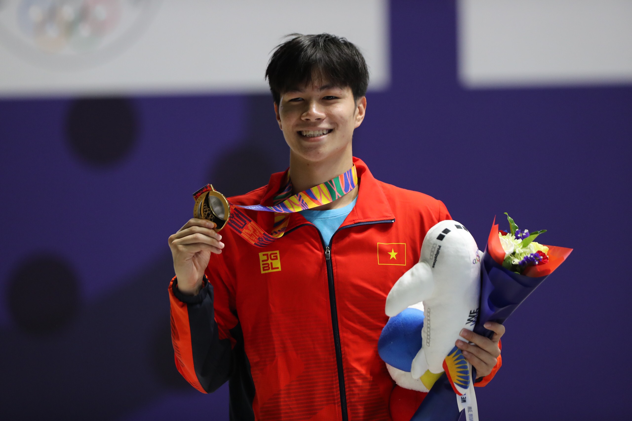 Sau khi bước lên bục cao nhất nhận huy chương, “kình ngư trẻ” xúc động: “Đây là lần đầu tiên em tham gia SEA Games nên không bị áp lực về thành tích. Em chỉ biết thi đấu hết mình. Vì vậy, những chiến thắng này nằm ngoài dự tính của em. Em rất vui và hạnh phúc khi đã phá kỷ lục, giành được HCV ngay trong lần đầu tham dự SEA Games. Em muốn gửi lời cảm ơn đến Ban huấn luyện Trung tâm Huấn luyện Thể thao Quốc gia Cần Thơ; Ban giám đốc, các HLV Trung tâm TDTT Quốc phòng 5 Hải quân đã dìu dắt em trong suốt thời gian qua”.