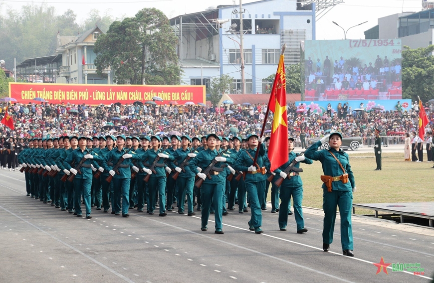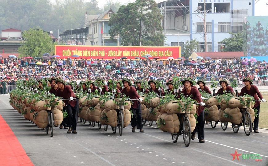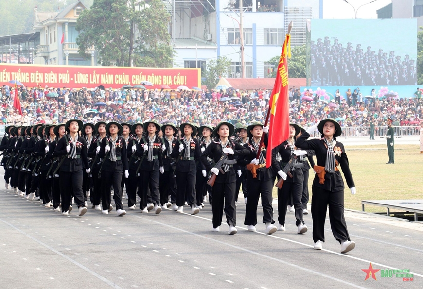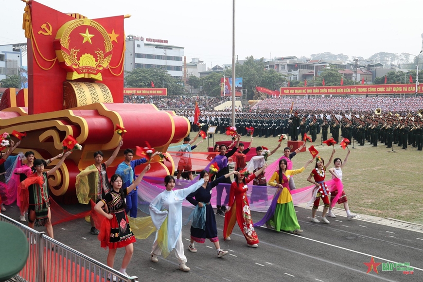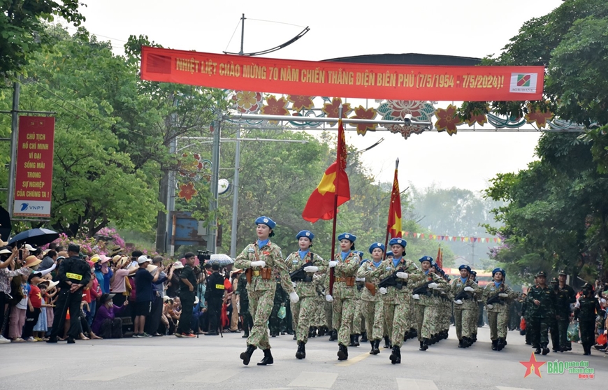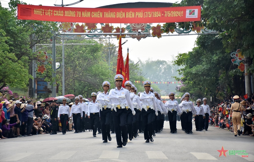 Sau khi các khối thực hiện diễu binh, diễu hành lễ đài, tiếp tục tiến ra các tuyến phố chính tại thành phố Điện Biên Phủ, trước sự chào đón và cổ vũ nồng nhiệt của đông đảo nhân dân.