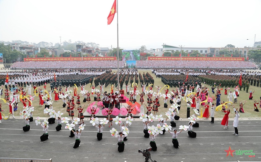 Màn biểu diễn nghệ thuật kết thúc lễ sơ duyệt kỷ niệm 70 năm Chiến thắng Điện Biên Phủ do Trường Đại học Văn hóa Nghệ thuật Quân đội làm tổng đạo diễn