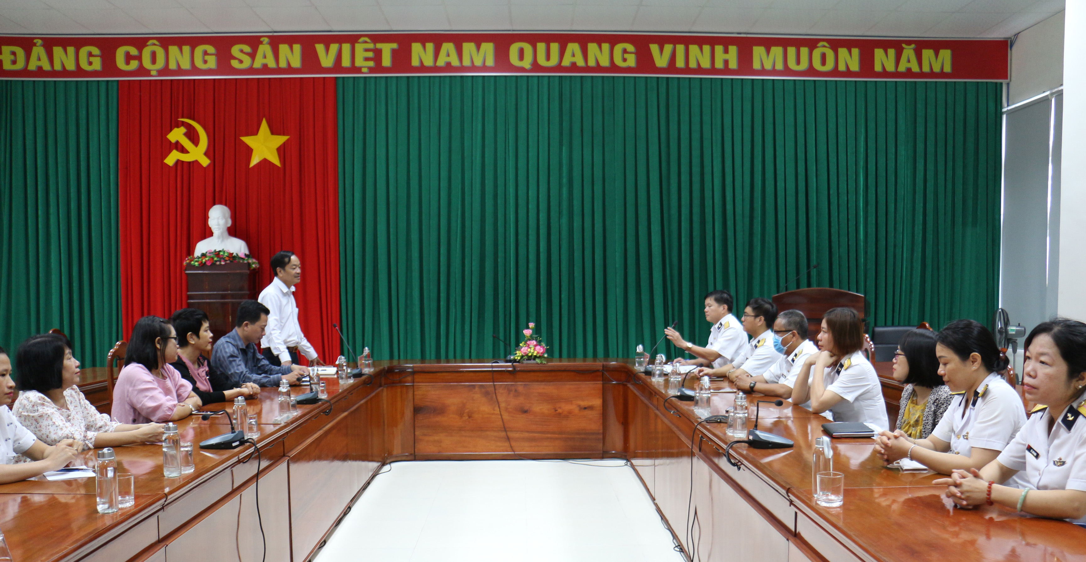 Ngày 12/10, tại TP. Nha Trang, đoàn công tác của sở Văn hóa và Thể thao tỉnh Khánh Hòa do ông Nguyễn Văn Thiện, Giám đốc sở làm trưởng đoàn đã đến tham quan, trao đổi kinh nghiệm hoạt động mô hình thư viện số và tự động hóa của Trung tâm Học liệu thư viện Học viện Hải quân.