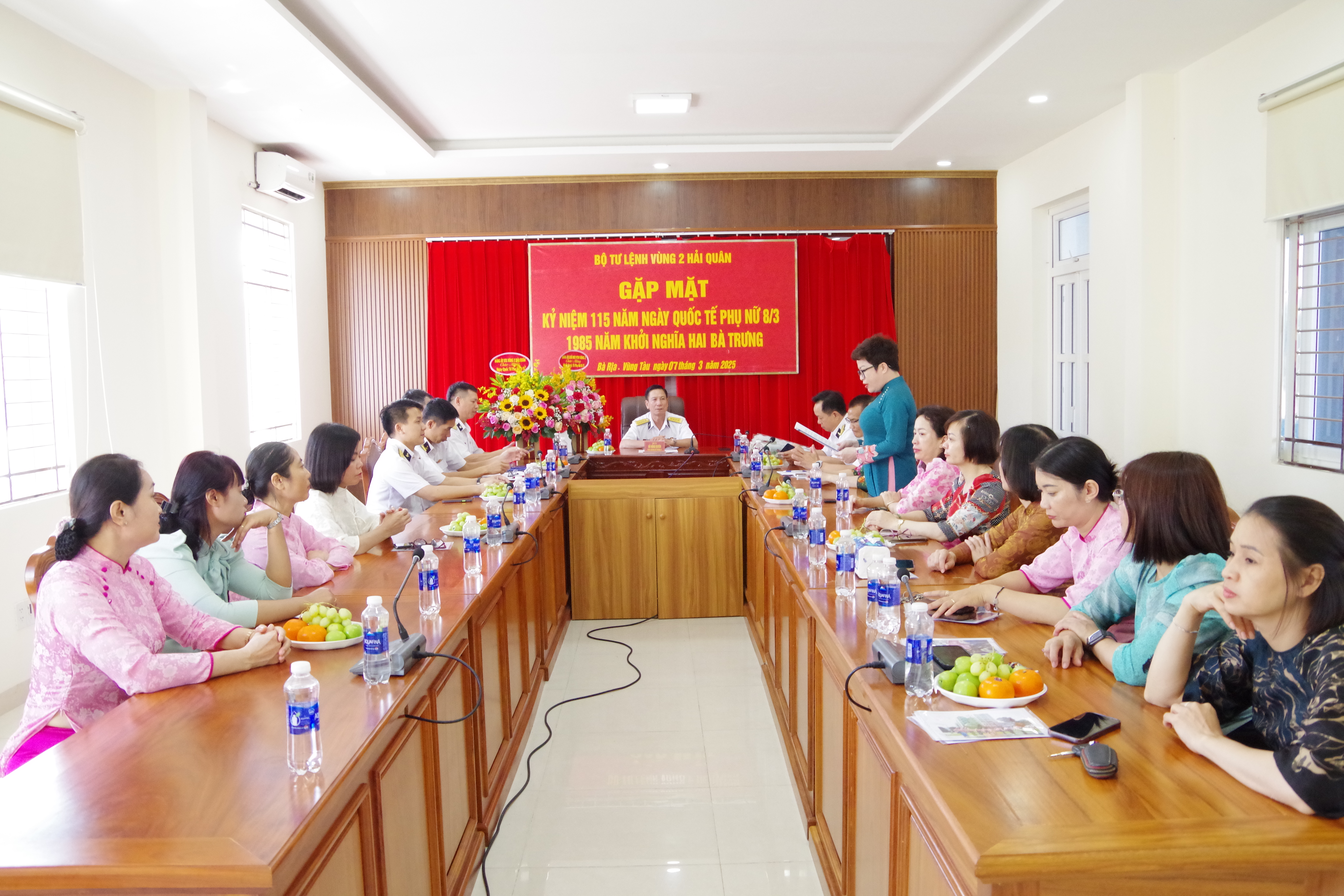 Tại buổi gặp mặt, Hội phụ nữ đã tổ chức tuyên truyền kỷ niệm 115 năm Ngày quốc tế phụ nữ và cùng nhau ôn lại truyền thống tốt đẹp của phụ nữ Việt Nam, phụ nữ Quân đội, Quân chủng và đơn vị; khẳng định vị trí, vai trò của phụ nữ trong sự phát triển một xã hội mới, hiện đại.