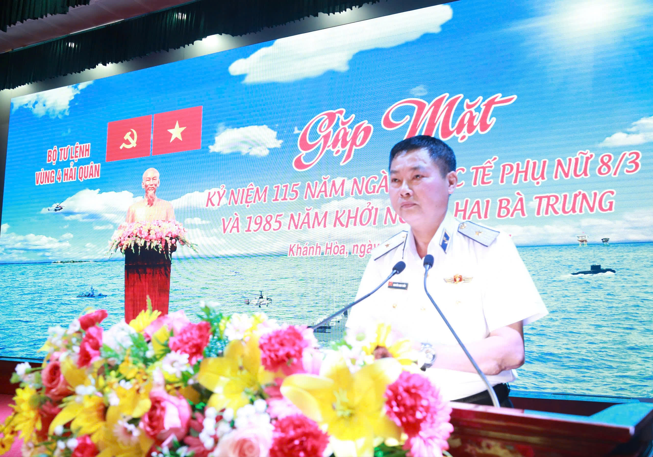 Phát biểu tại buổi gặp mặt, Chuẩn Đô đốc Nguyễn Anh Tuấn gửi lời chúc mừng tốt đẹp nhất tới toàn thể cán bộ, hội viên phụ nữ. Đồng chí biểu dương, ghi nhận cán bộ, hội viên phụ nữ đã luôn nỗ lực phấn đấu hoàn thành tốt các nhiệm vụ được giao, đóng góp vào thành công chung của đơn vị và của Vùng.
