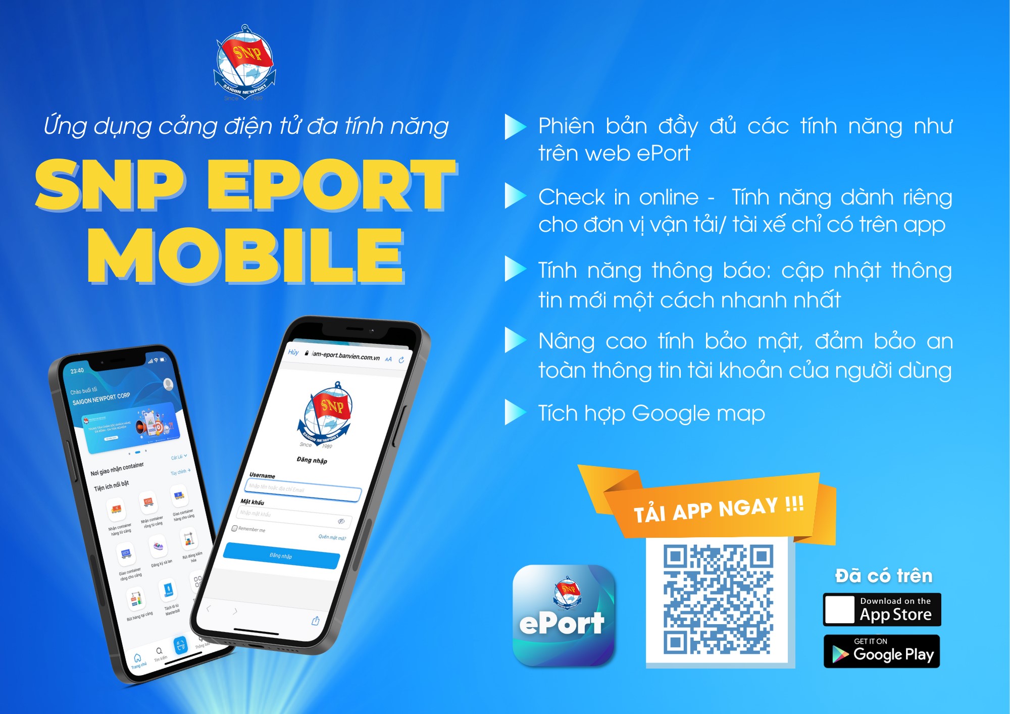 Sau hơn 10 tháng nghiên cứu, tích hợp, phát triển, với sự phối hợp về nghiệp vụ giữa tổ dự án và đối tác phát triển Bản Viên, SNP ePort đã có những thay đổi nâng cấp vượt trội, cụ thể: Giao diện hoàn toàn mới với thao tác thực thi đơn giản, dễ dàng; sử dụng công nghệ được đánh giá cao trên thị trường hiện nay và được sử dụng bởi nhiều thương hiệu nổi tiếng; tốc độ truy cập giống như phiên bản Web; phát triển đầy đủ 36 bộ nhóm tính năng với 2 nhóm chính là tìm kiếm và thanh toán. Đặc biệt chức năng Check in online là ưu điểm vượt trội của chương trình giúp các tài xế rút ngắn tối đa thời gian dừng chờ trước cổng cảng.
